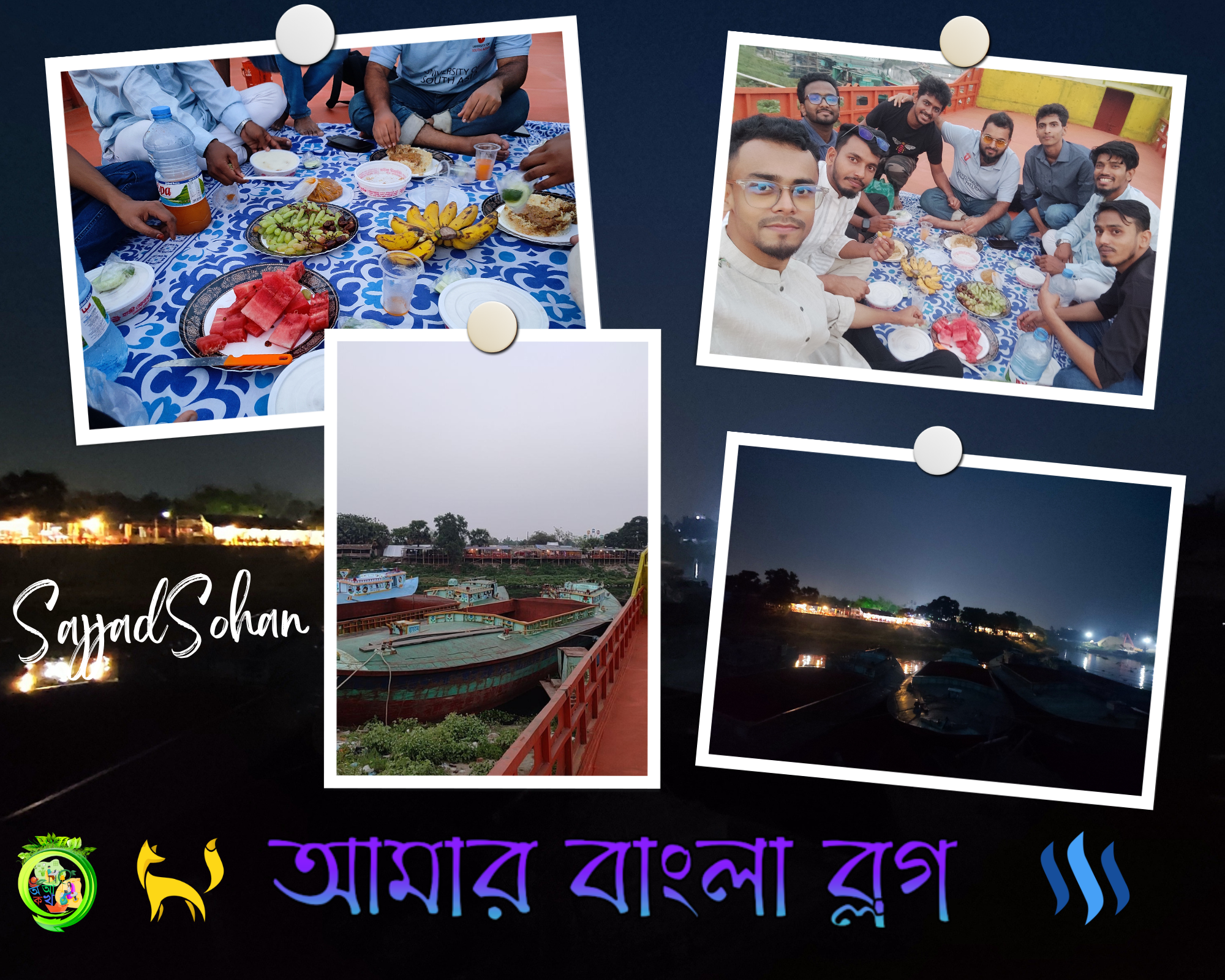 অনেকদিন নিজের টিম থেকে দূরে ছিলাম এজন্য আর না করতে পারলাম না এবং এমনিতেও আমি ঢাকা আসছি, শুধু মাত্র একদিন আগে চলে আসতে হল, প্রথমে আমরা ডিসাইড করেছিলাম নিলাম মার্কেটে ইফতার করব। পরবর্তীতে নীলা মার্কেটে যাওয়ার পর আমরা নদীর পার হয়ে খানিকটা দূরে একটা বোট এর উপরের বসা পেলাম। খোলা মাঠে বসার উদ্দেশ্যে থাকলেও আমরা দুই একজন চাচ্ছিলাম বোটে বসতে।