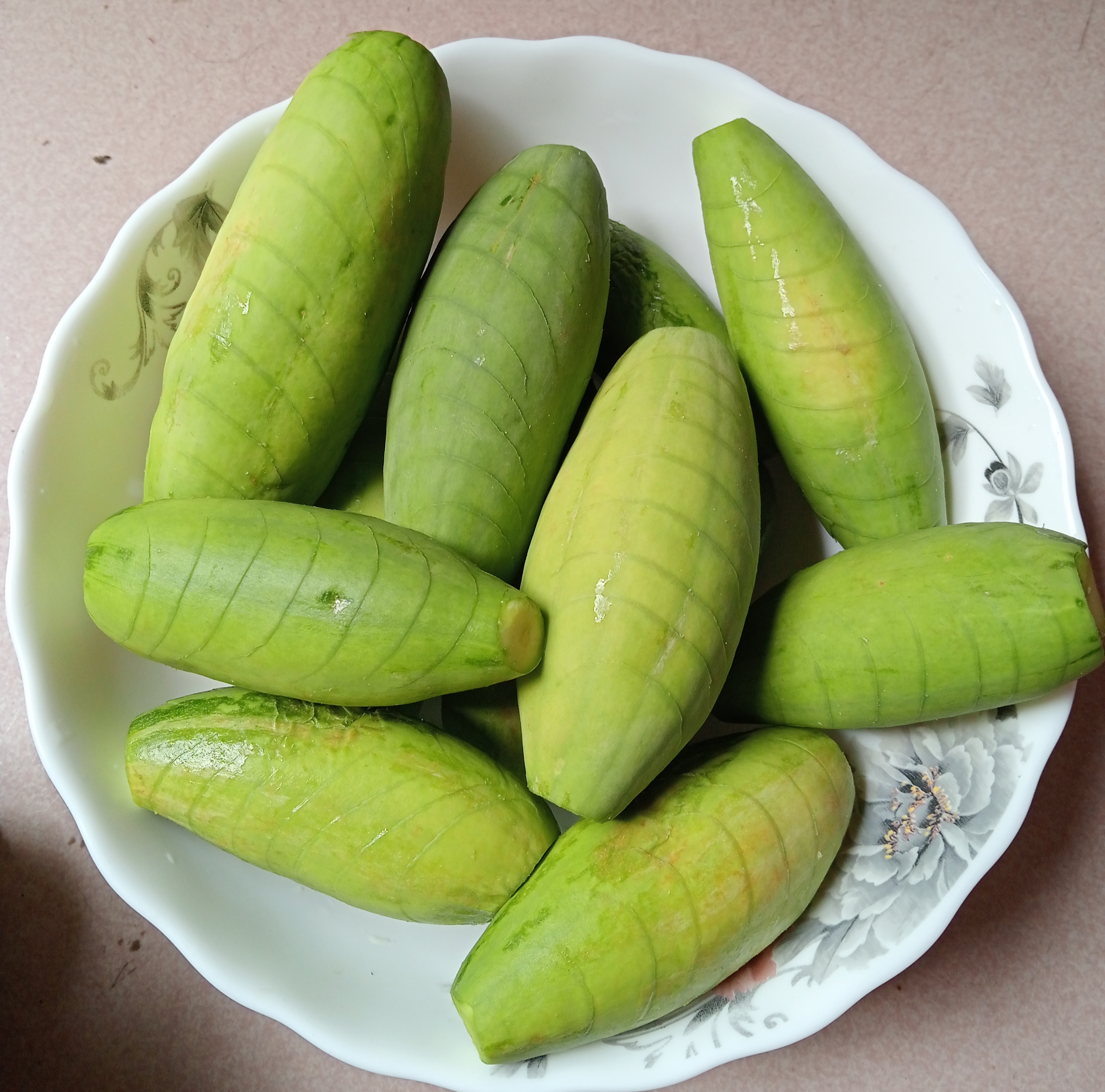 - এবার পটল গুলো ভালো ভাবে ধুইয়ে নিয়ে পানি ঝরিয়ে পটোলের দুই পাশে ছুরি দিয়ে এভাবে ডিজাইন করে নেব।