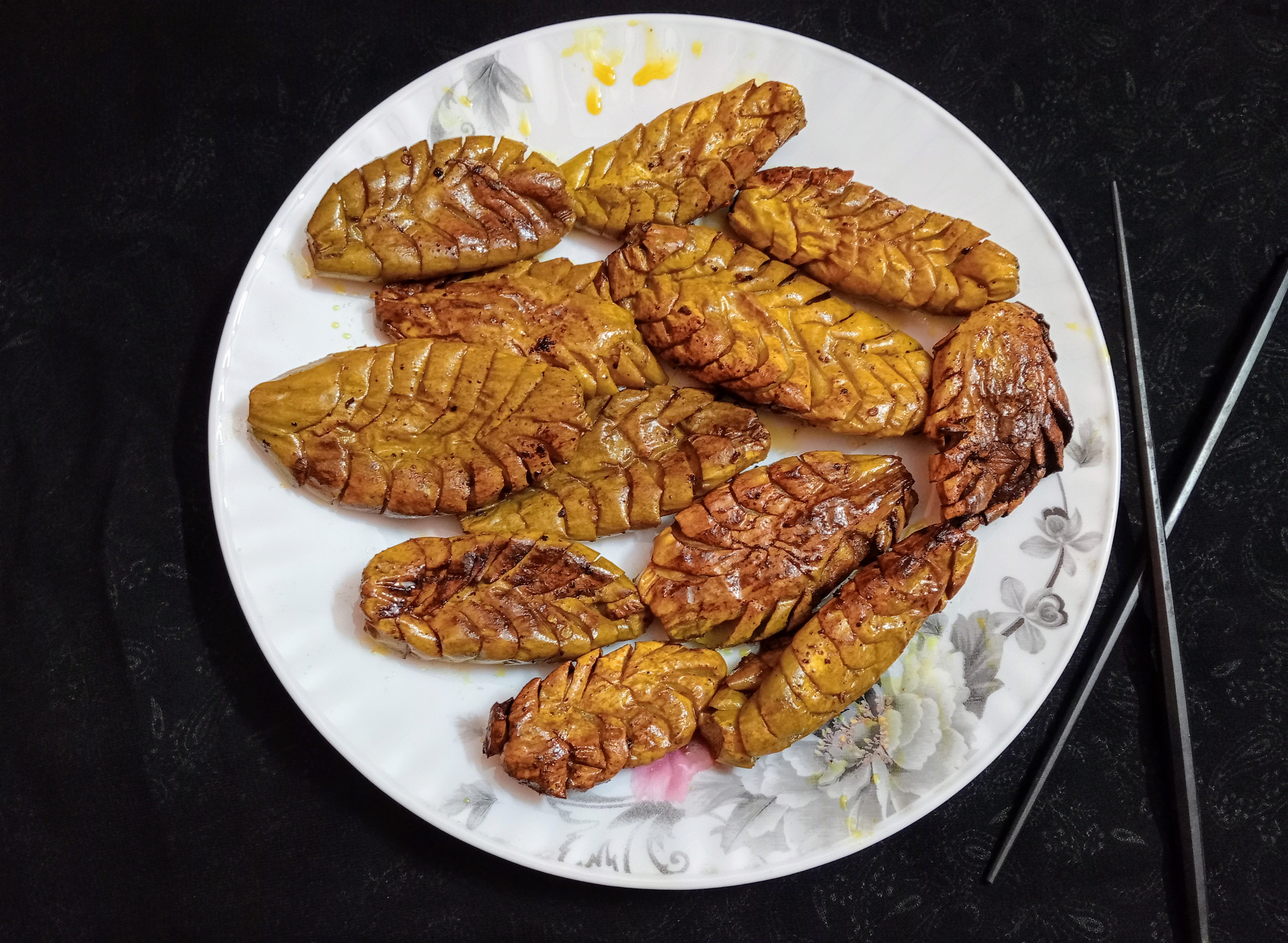 মশলা ভরা পটলগুলোকে ভেজে তিনি ভাবলেন, 'কেমন হলো দেখতে?'। গরম তেলে পটলগুলো ভাজতে শুরু করলেন আর ধীরে ধীরে রান্নাঘর ভরে গেল দারুণ মশলার সুগন্ধে। পটলের স্বাদ যেমন ততটাই লোভনীয়, তেমনি দেখতে ছিল রঙিন ও আকর্ষণীয়।