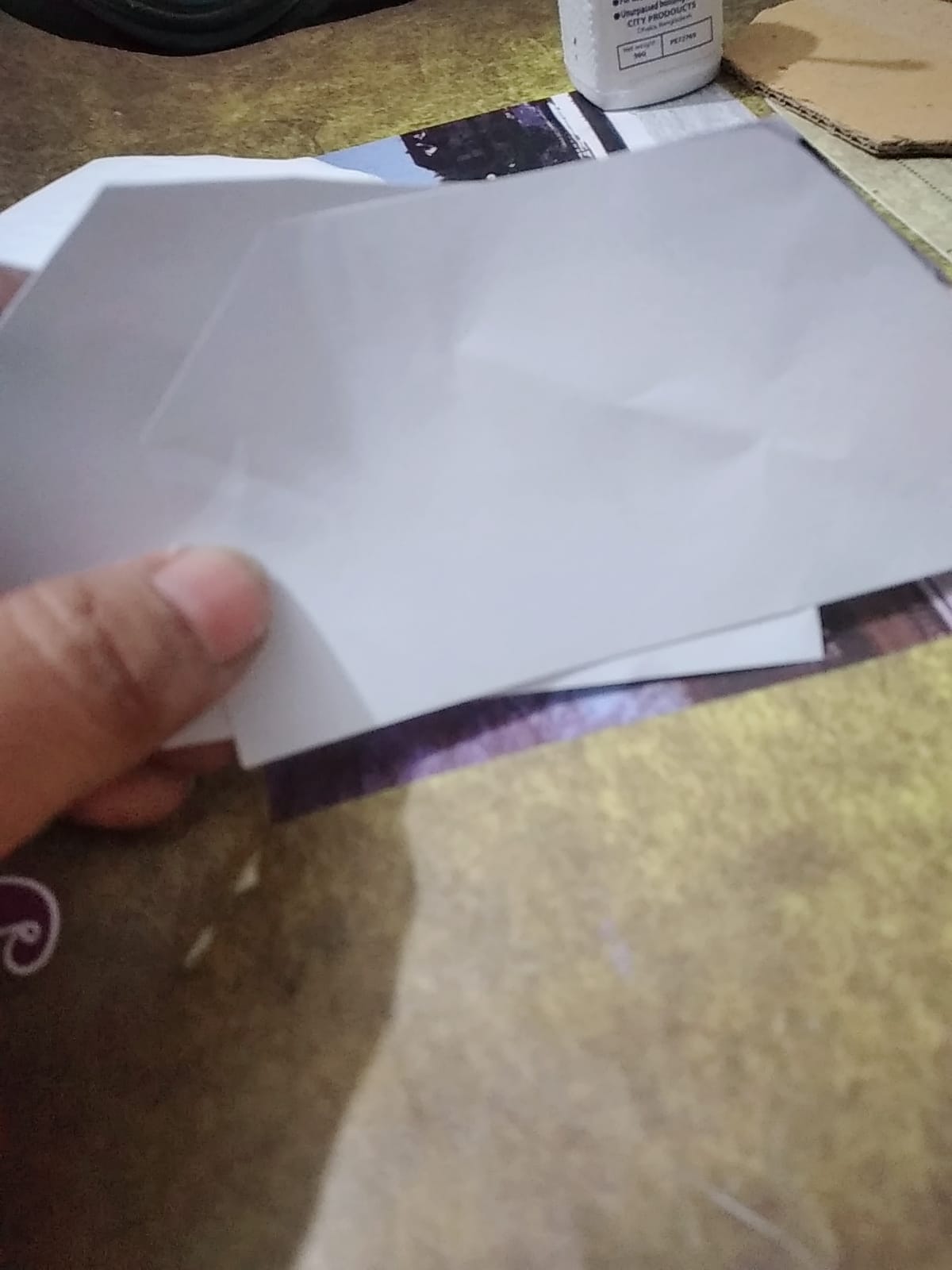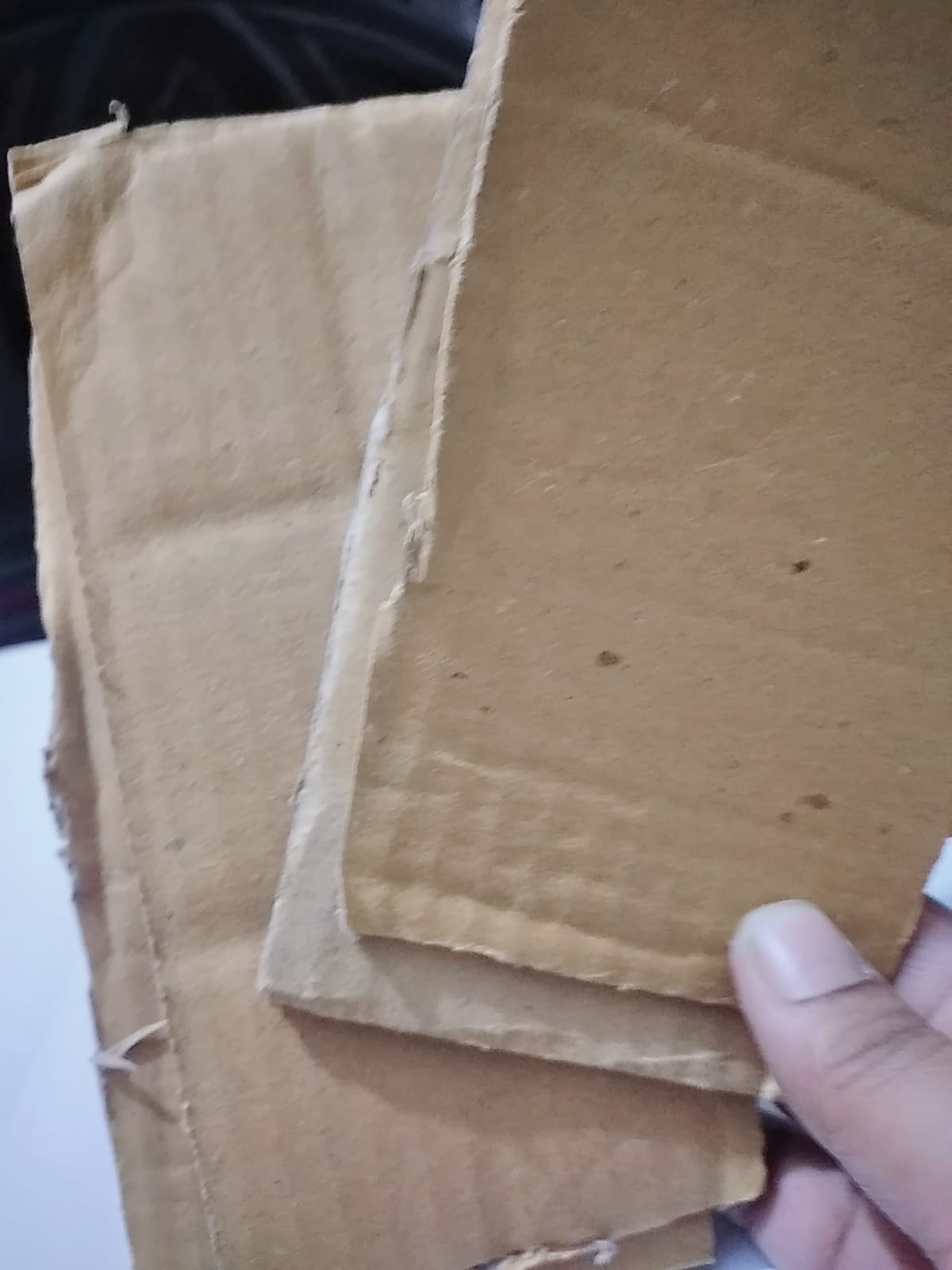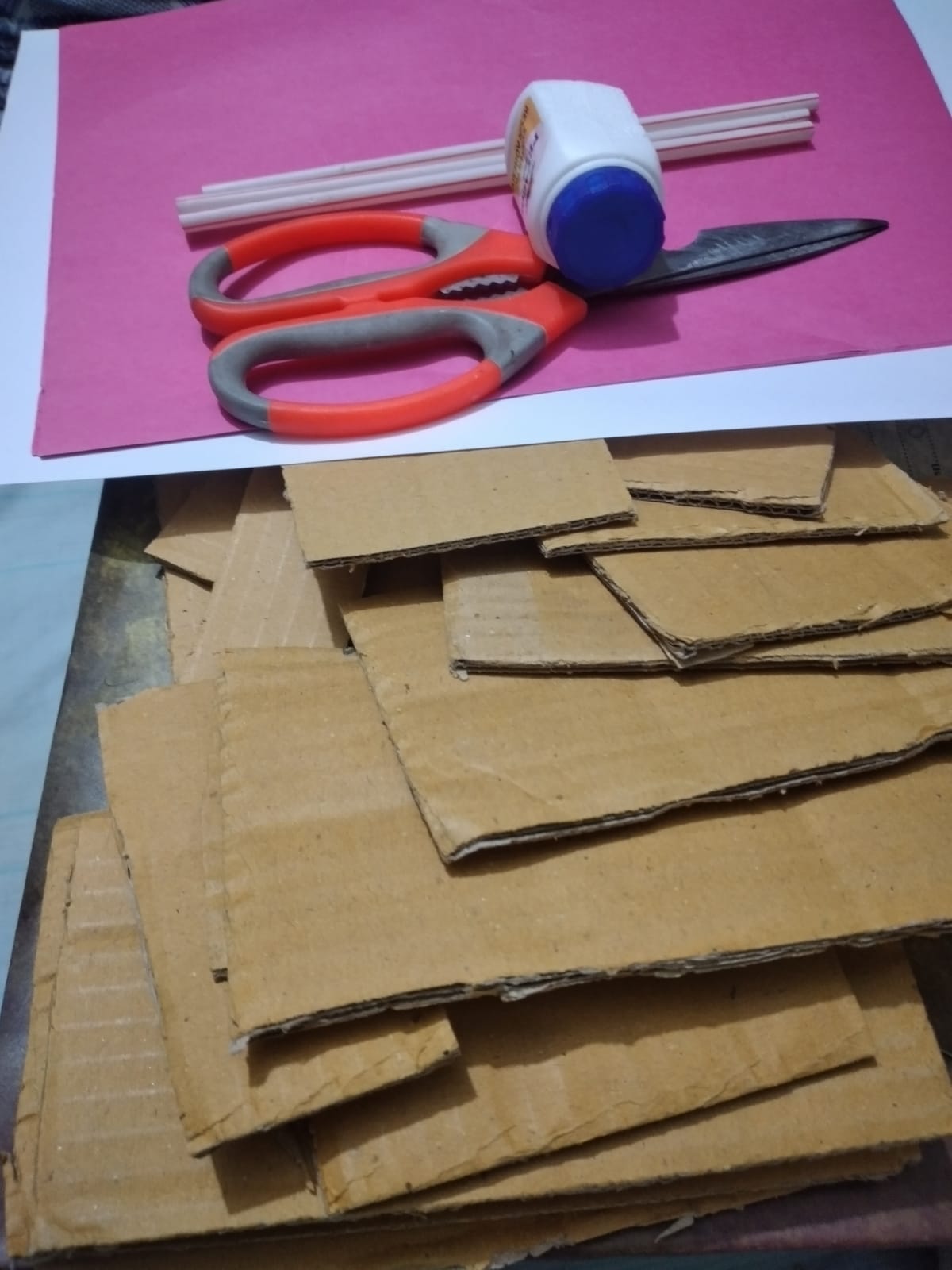 খাট বানাতে কার্ড বোর্ডকে সমান করে চারটি টুকরো করে নিলাম।এরপর আঠা দিয়ে চারটি লাগিয়ে নিলাম।এরপর সাদা কাগজ দিয়ে আঠা লাগিয়ে দিলাম।