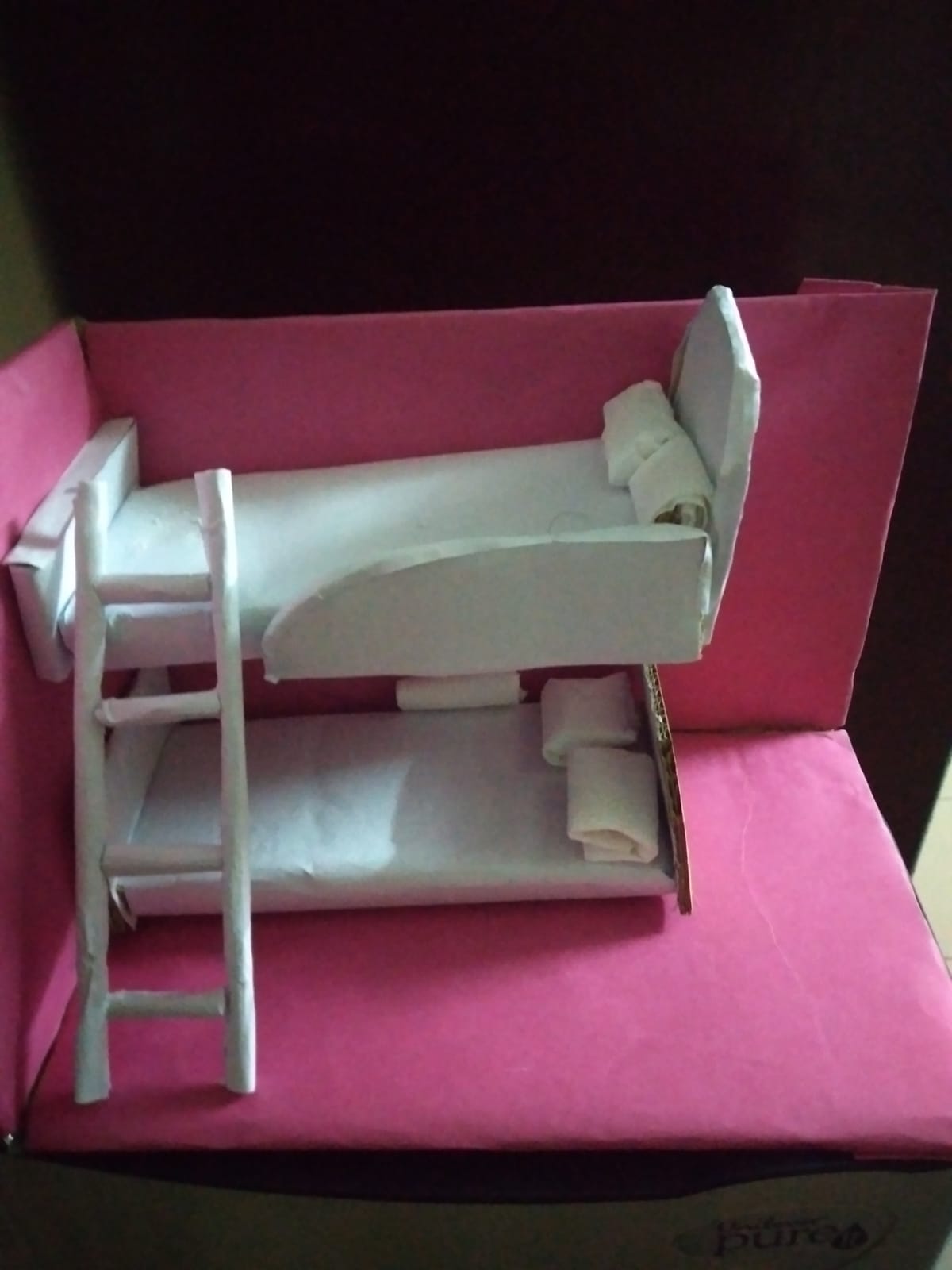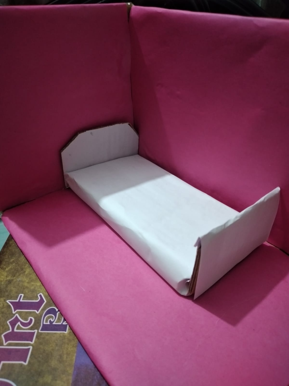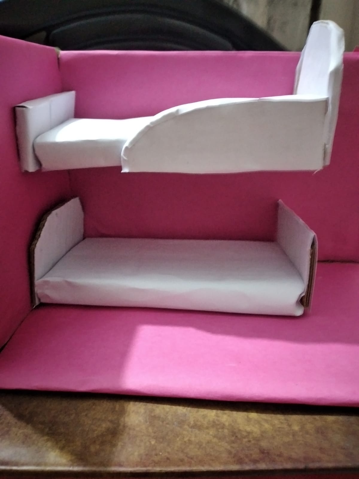 এরপর উপরের খাটের জন্য পাশের জন্য মাপ দিয়ে কাগজ কেটে নিলাম।এরপর কাগজ কেটে সাদা কাগজ দিয়ে আঠা দিয়ে আটকে নিলাম।এরপর দ্বিতীয় খাটটিও করে নিলাম।