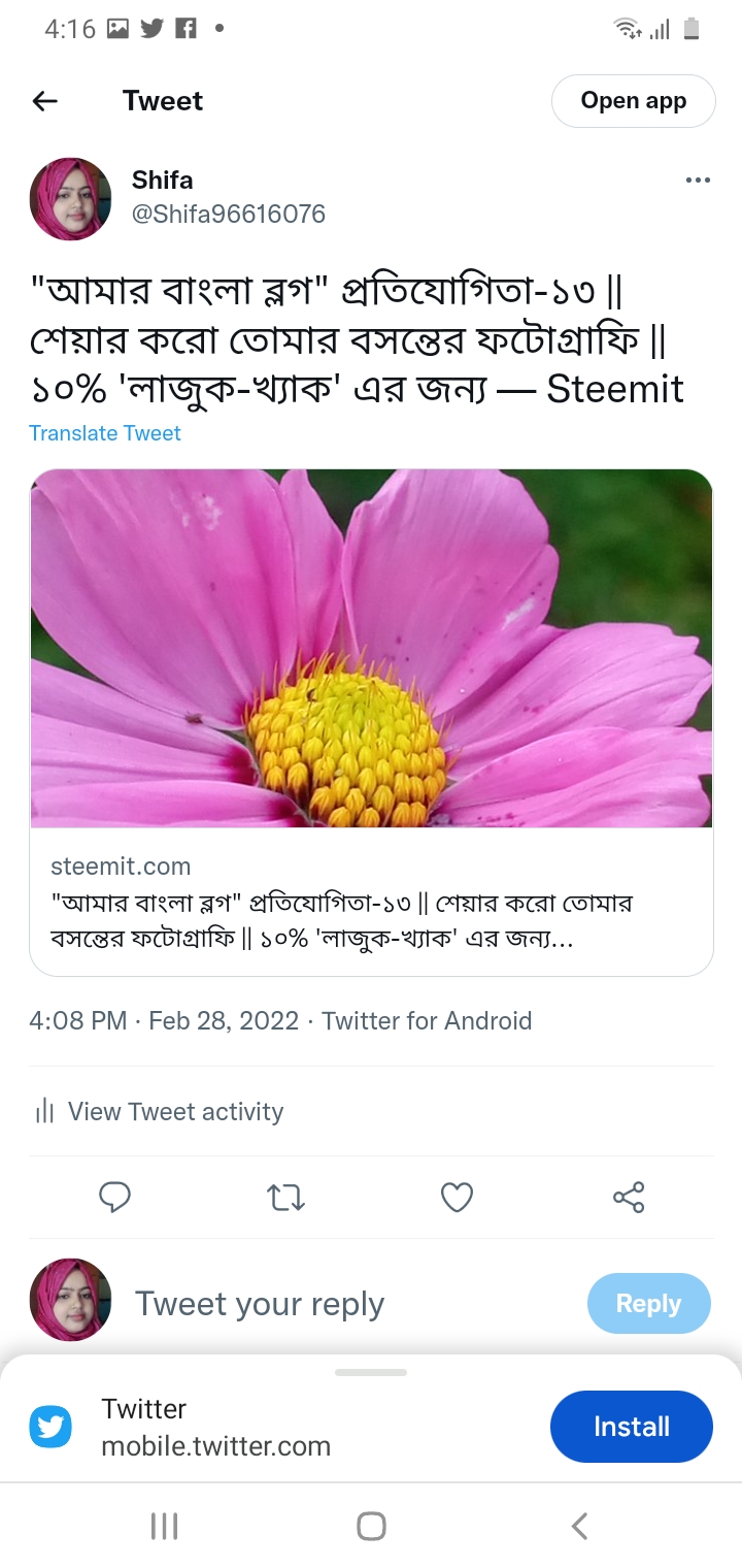 আপনার শেয়ার করার বসন্তের ফুলের ফটোগ্রাফি পোস্ট কমপক্ষে ১৫০ শব্দের অধিক হতে হবে এবং সর্বনিম্ন বসন্তের পাঁচটি ভিন্ন রকমের ফুলের ফটো দিতে হবে এবং অবশ্যই প্রতিটি ফুলের নাম ও বৈশিষ্ট্য লিখতে হবে ।