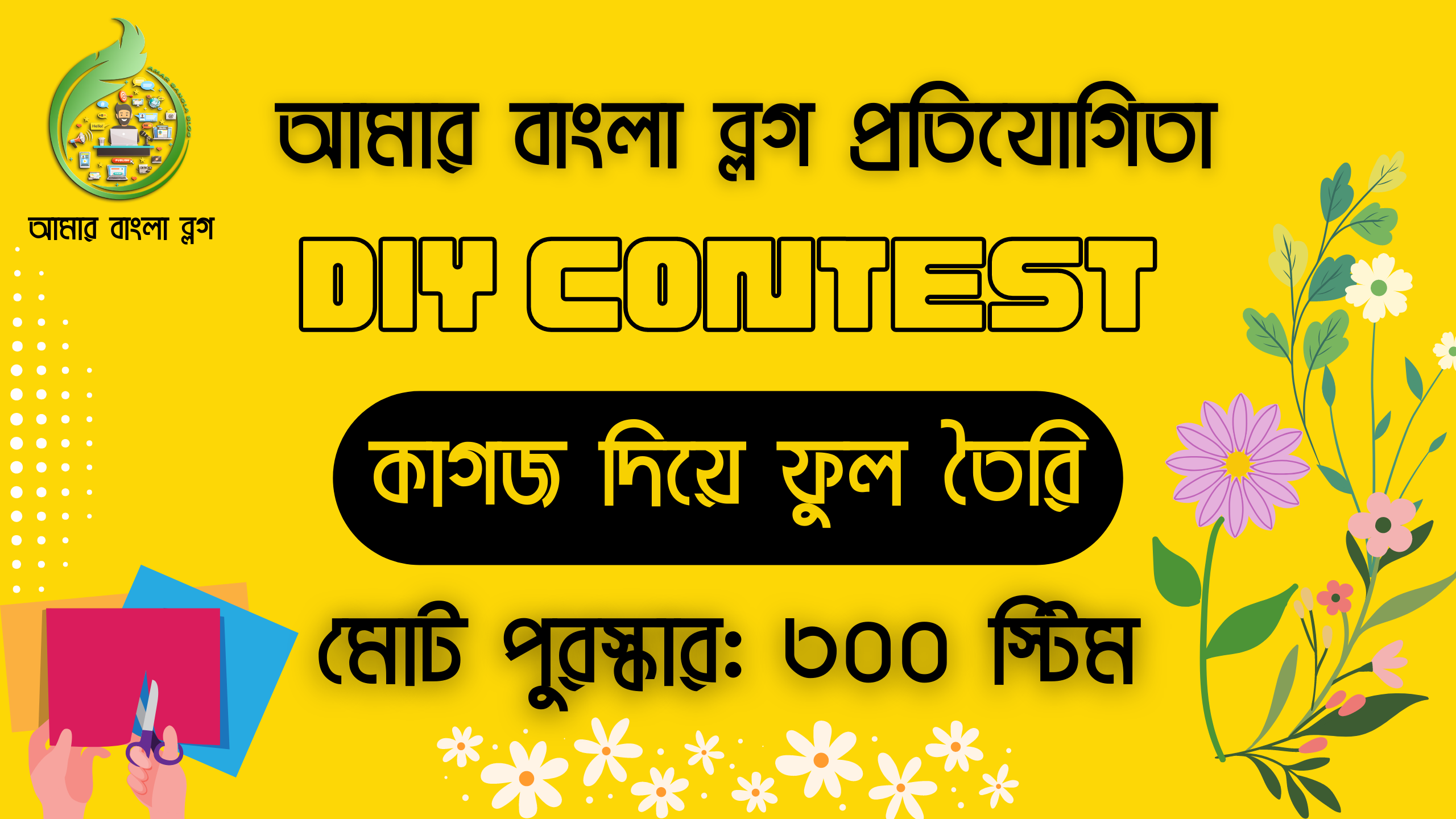 ব্যানার দেখেই বুঝে গিয়েছেন কি নিয়ে হাজির হয়েছি তাই না? হ্যাঁ বন্ধুরা খুবই চমৎকার একটি টপিক নিয়ে হাজির হয়েছি।“আমার বাংলা ব্লগ” কমিউনিটিতে আমরা সবসময় আপনাদের কাছ থেকে অনেক সুন্দর সুন্দর diy প্রজেক্ট দেখতে পাই।তাই এবার ডাই প্রজেক্ট নিয়ে হাজির হয়ে গেলাম।এবারের ডাই কন্টেস্ট (diy contest)- কাগজ দিয়ে ফুল তৈরি। ফুলকে ভালোবাসেনা কে বলুন? পৃথিবীতে এমন কোন মানুষ পাওয়া যাবে না যে ফুল ভালোবাসে না। ফুল ভালোবাসার প্রতীক, আনন্দের প্রতীক, শান্তির প্রতীক। হোক না তা কাগজের ফুল। আর এই কাগজের ফুলটিও আমাদের মনে এনে দিতে পারে অনাবিল আনন্দ।এই ফুল বানানো খুব বেশি কঠিন কাজ নয়, আমরা সকলেই খুব সহজেই বানিয়ে ফেলতে পারি। তাই আপনাদের শত স্ফূর্ত অংশগ্রহণ আমরা আশা করছি।