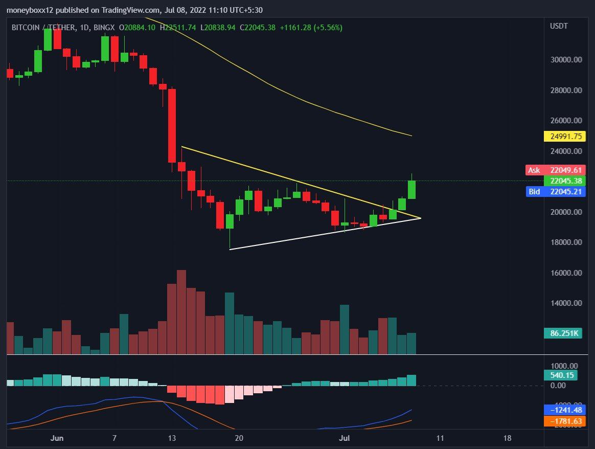 ๐ถ ๋ํ ๊ฐ๊ฒฉ์ด $21,800 ์ด์์ผ๋ก ๊ธ๋ฑํ๊ณ $22,500 ๋ถ๊ทผ์์ ๊ณ ์ ์ ํ์ฑํ์ต๋๋ค. ๋ค์ ์ฃผ์ ์ ํญ์ $22,800์ ๊ฐ๊น์ต๋๋ค. ์ด ์์ญ ์์ ์ข ๊ฐ๋ $23,300์ ๊ฐ๊น์ด ๊ฐ๊ฒฉ์ด ๋ ์ ์์ต๋๋ค.