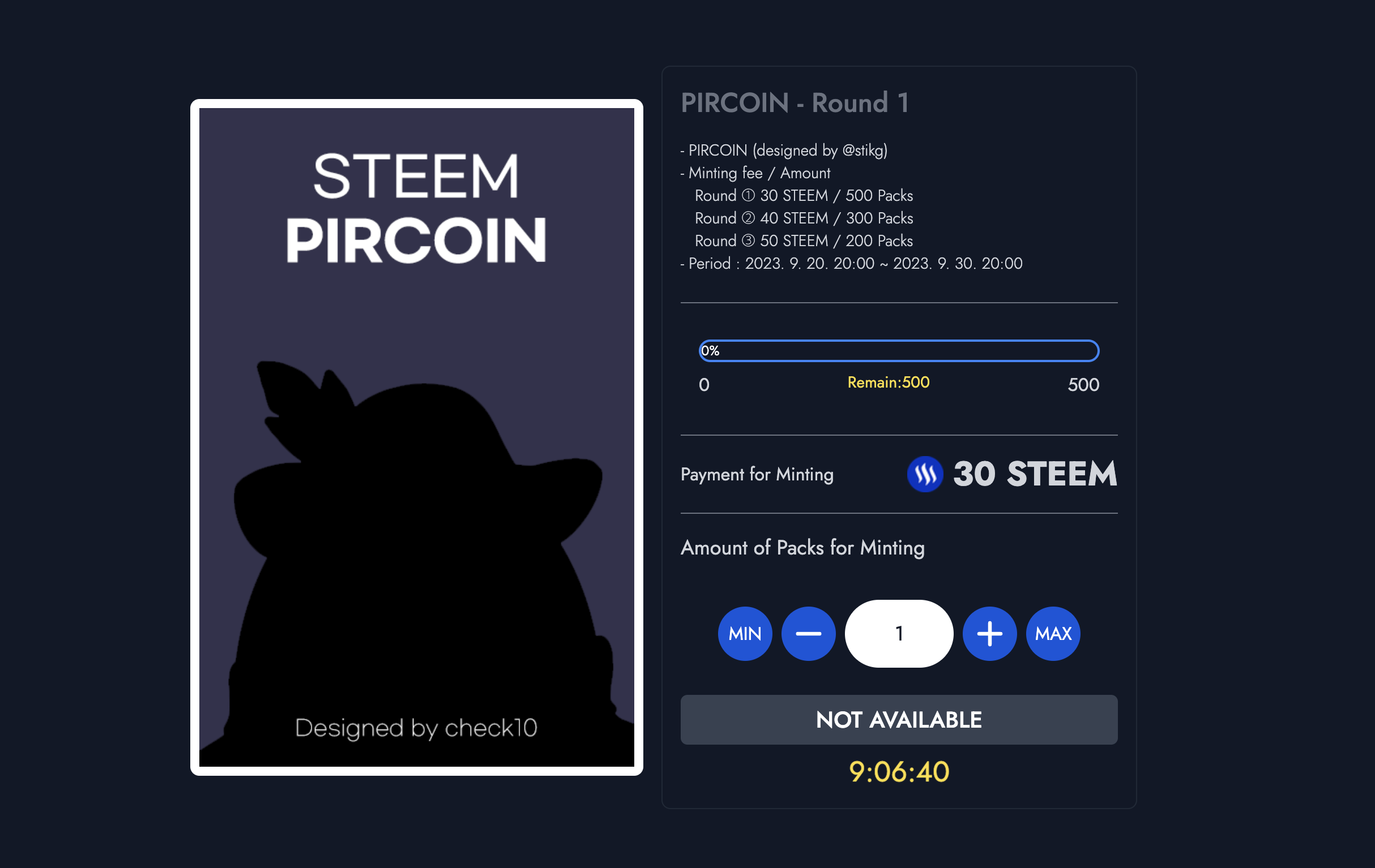- 1라운드 : 500팩 / 팩당 30 STEEM