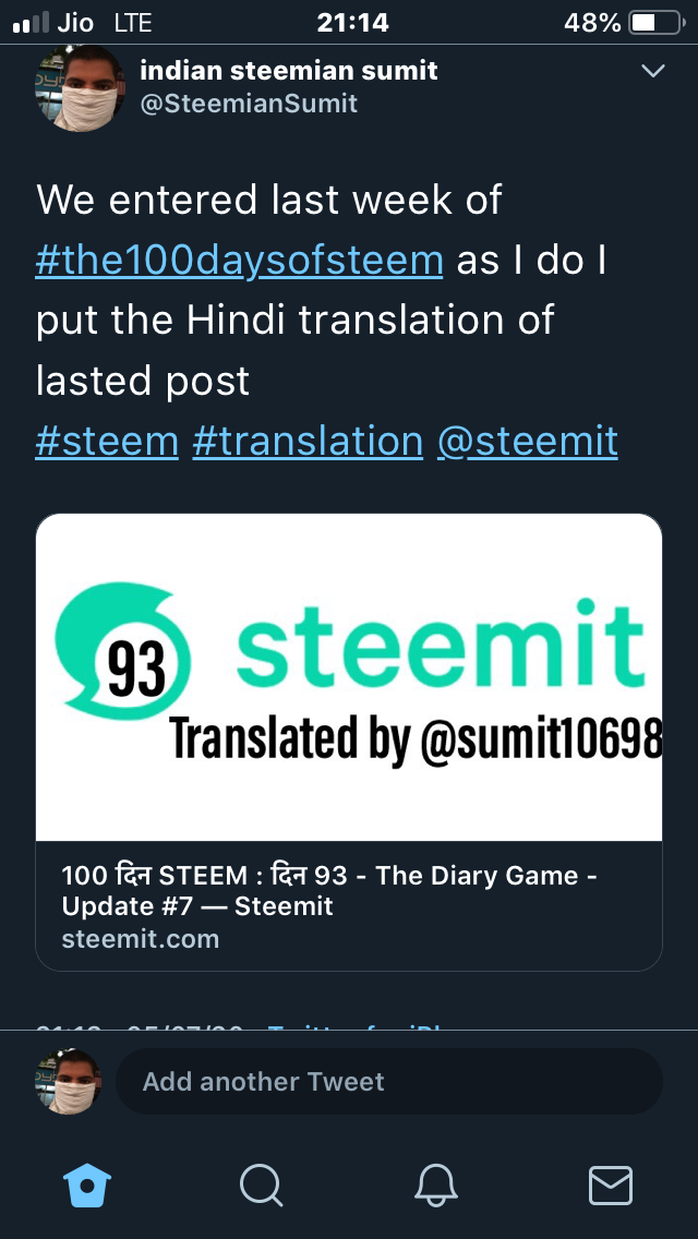 Tweet link :- https://twitter.com/steemiansumit/status/1279803158055669765?s=21