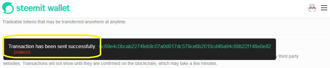 You will see this pop up message when the transaction is completed.