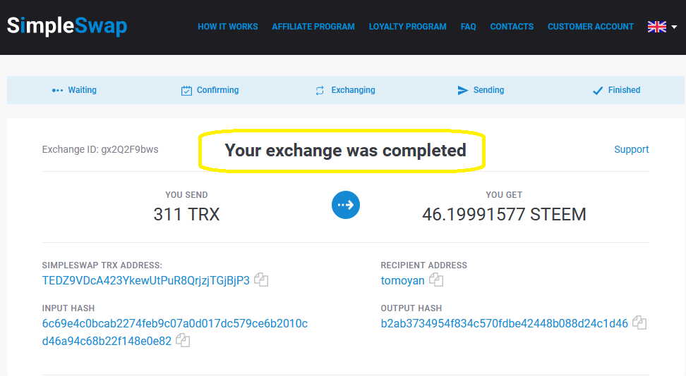 That is it. Exchange takes some time. It took me about 10 minutes this time, but it could take longer (or shorter) sometimes.