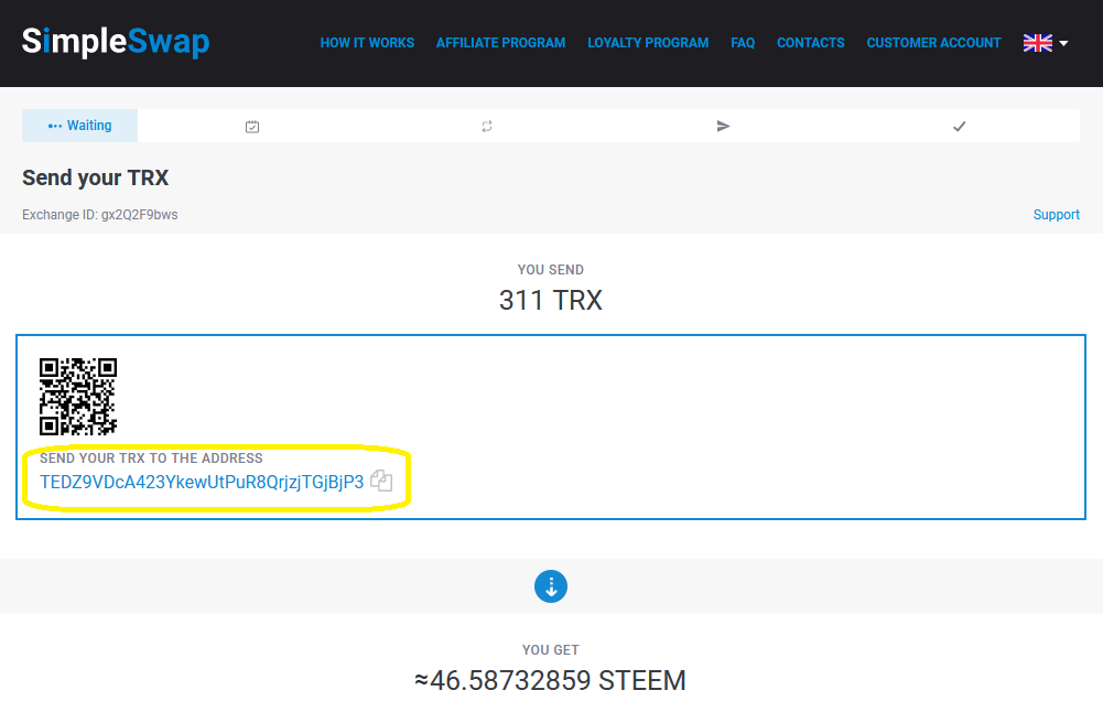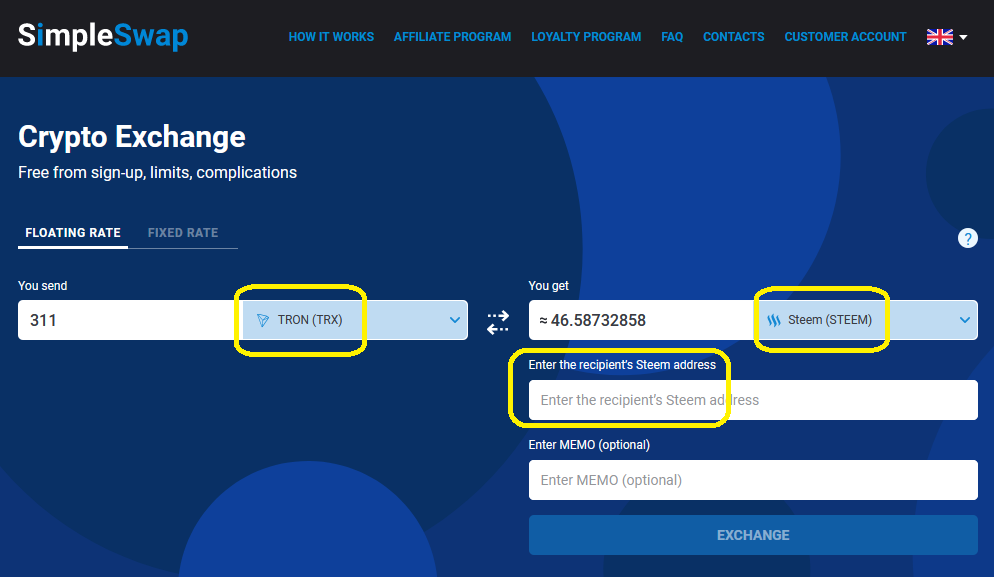 In this case, I pick TRON(TRX) to Steem(STEEM) and enter your Steemit username