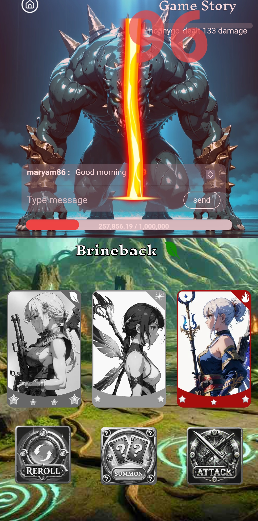 Then I clicked on the play button. After clicking on the play button, three cards came out by clicking on summon. All the three cards had one or two stars. For this, I clicked on the attack option. After clicking here, I fought for a while and got 190 points of damage.
