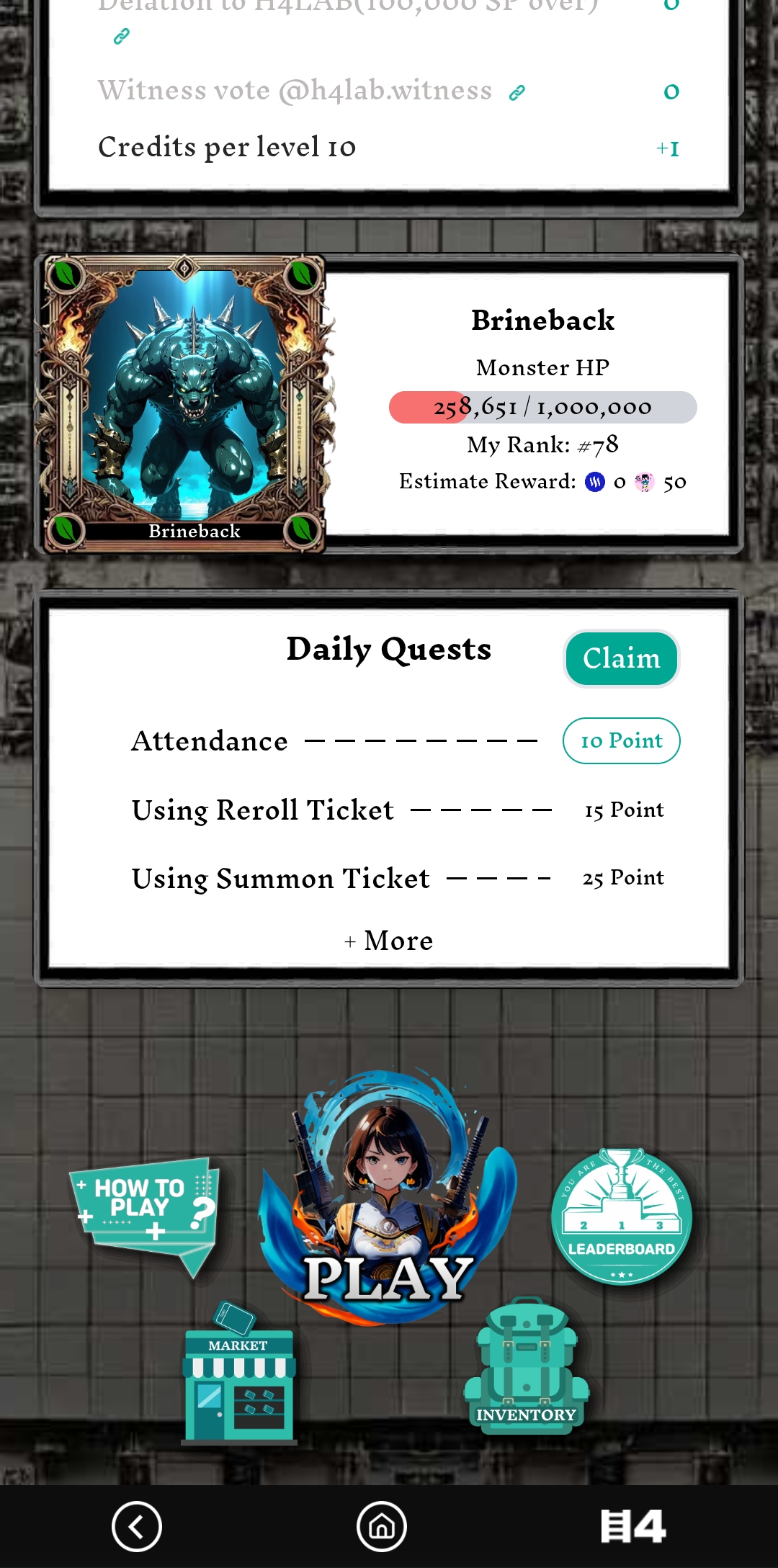 First I entered the game website and here I saw that I was level 16 and had available level credits of 2. Then I went down and saw that my rank was 78.