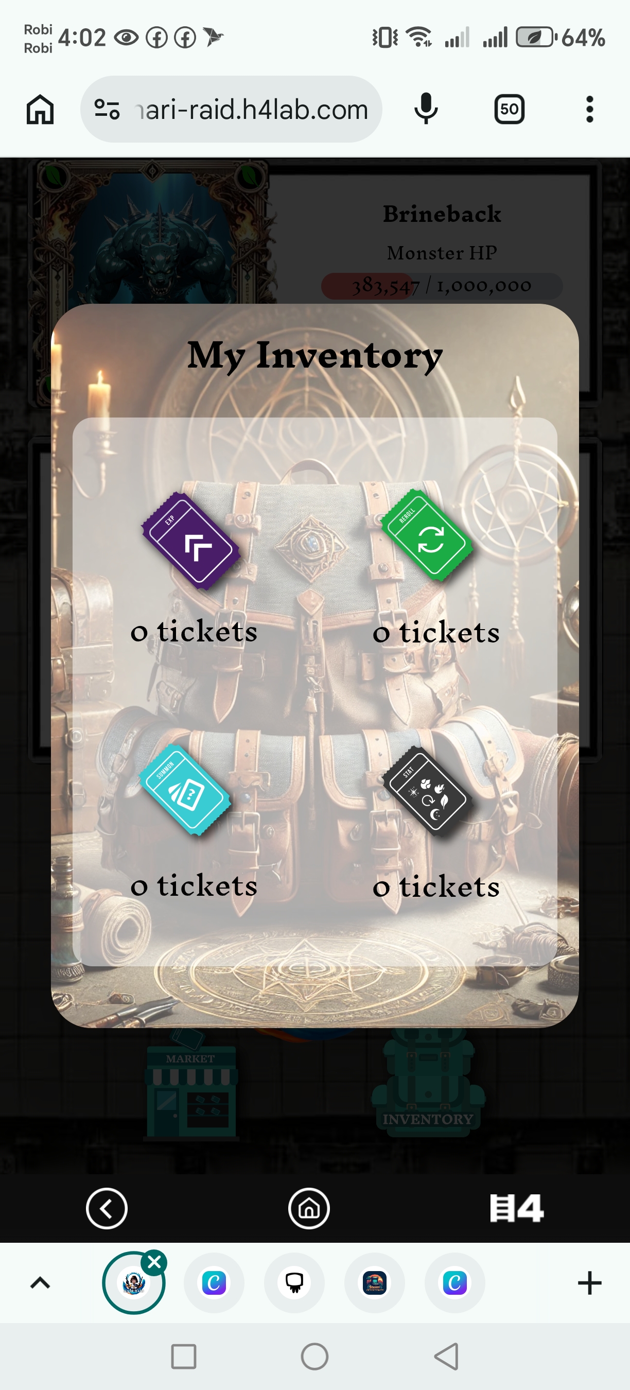Now go to my inventory to check my ticket balance. It's showing zero.
