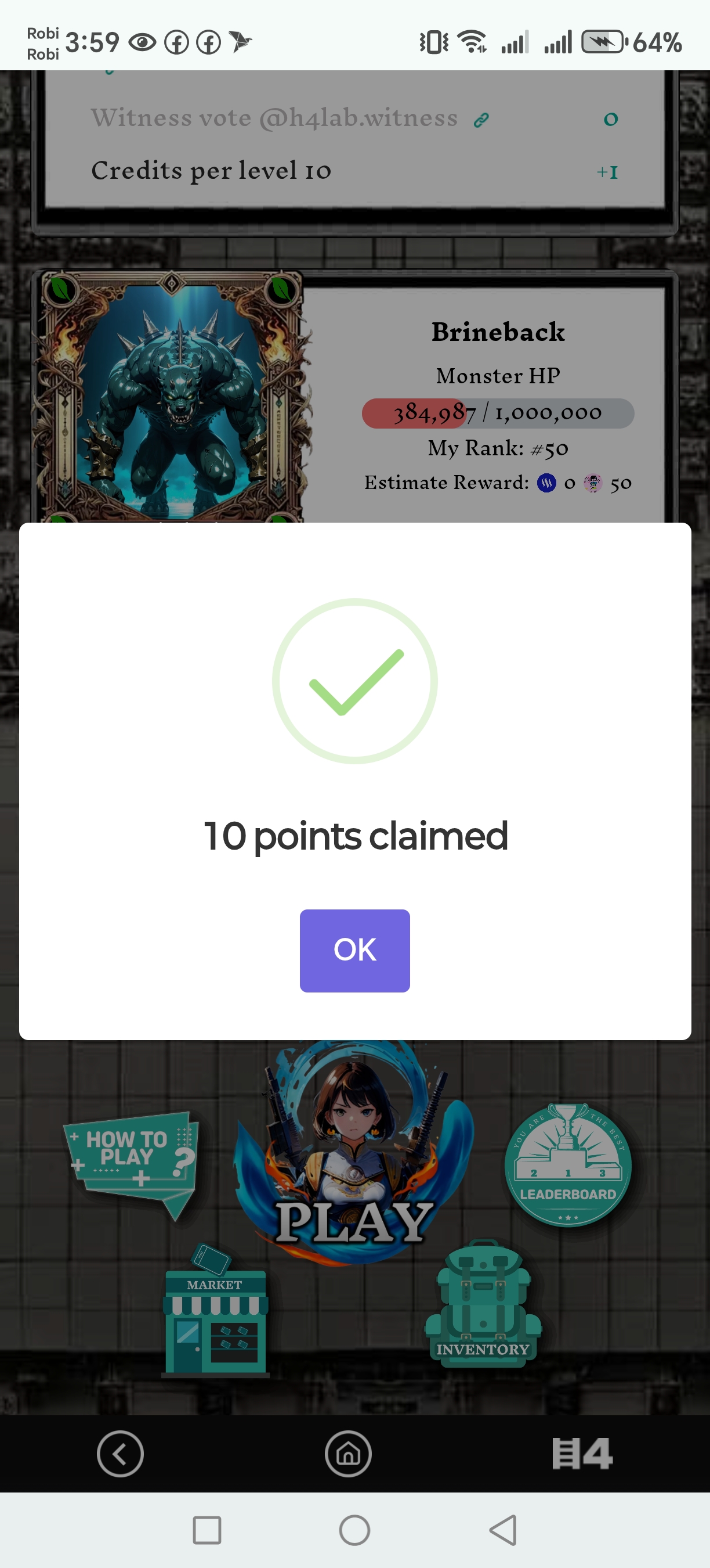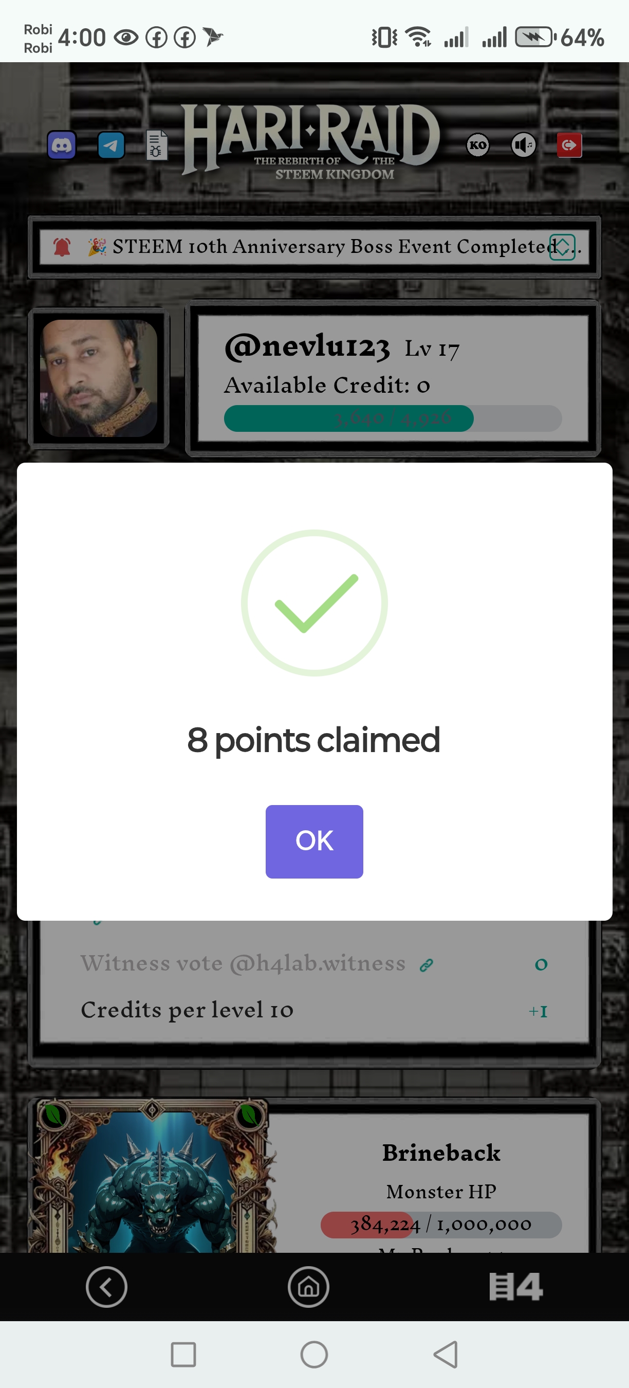 Today at first claim 10 hari points as like everyday also level and cradit was as like everyday.
