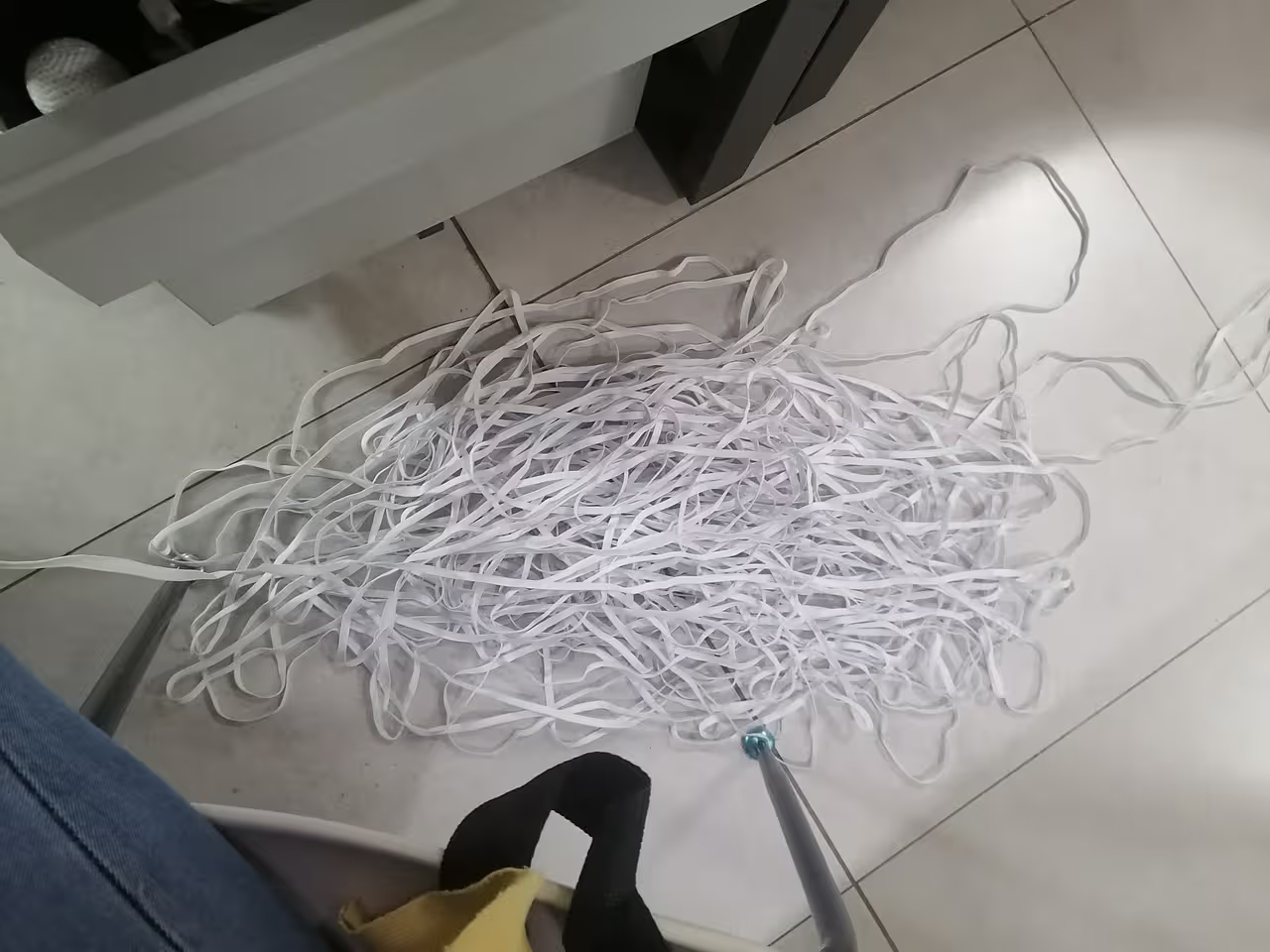 I spent all my lunch break fixing all those elastics and thought that I really did a great job after seeing all those once in tangle all neatly arranged and now easy to use. A pat on my shoulder!
