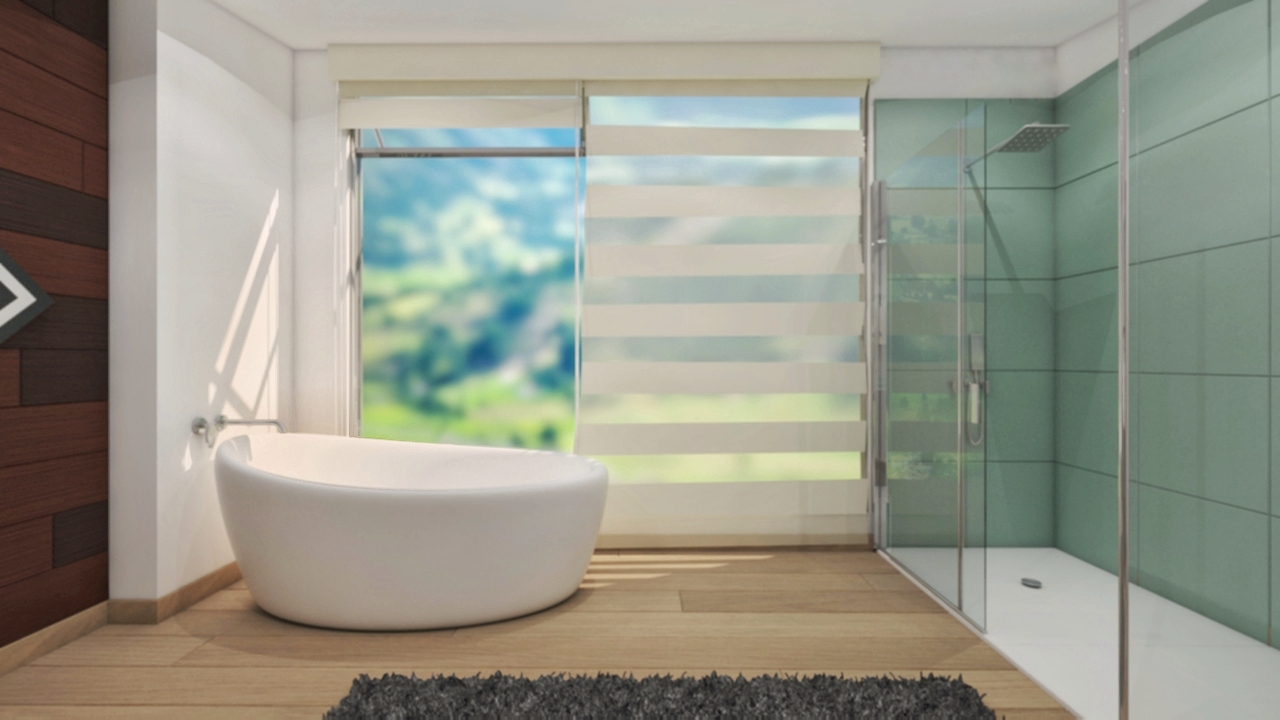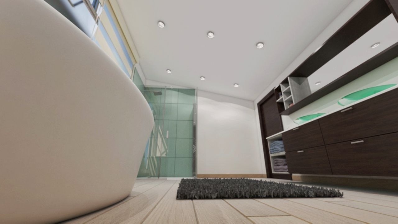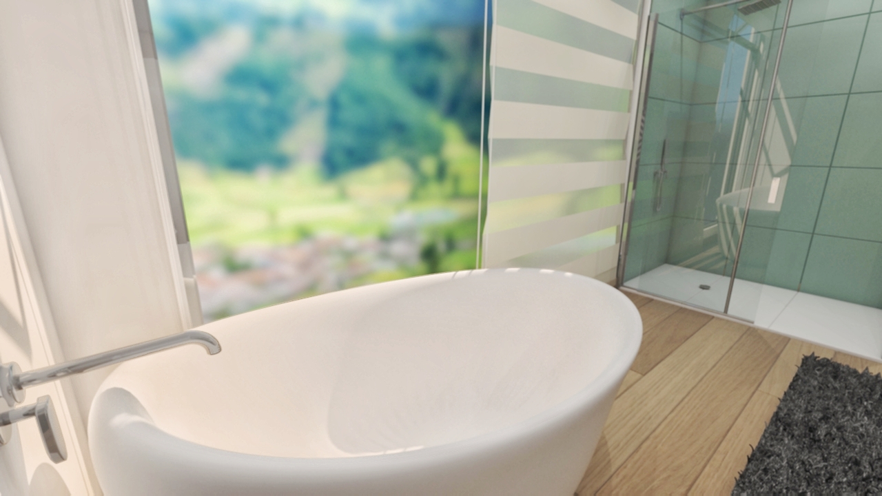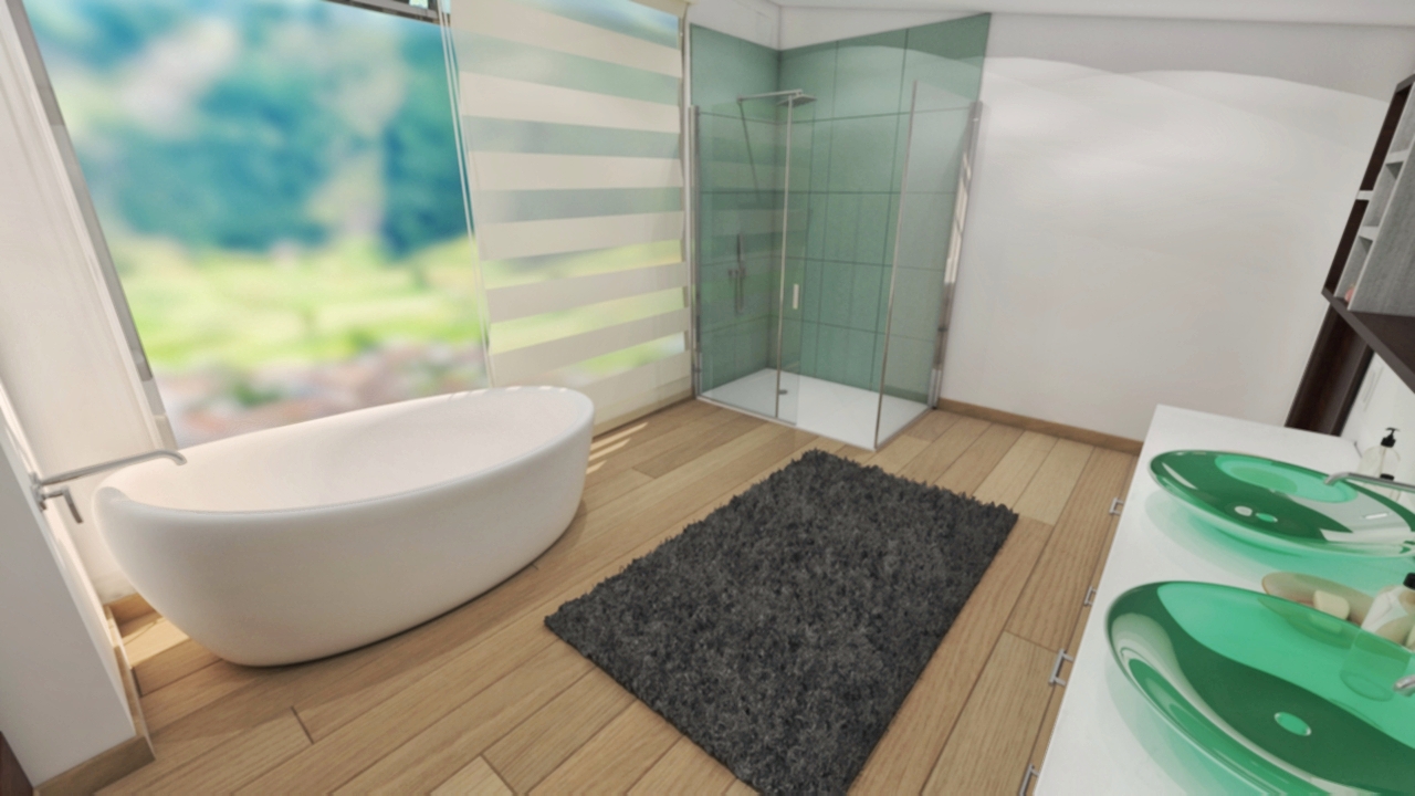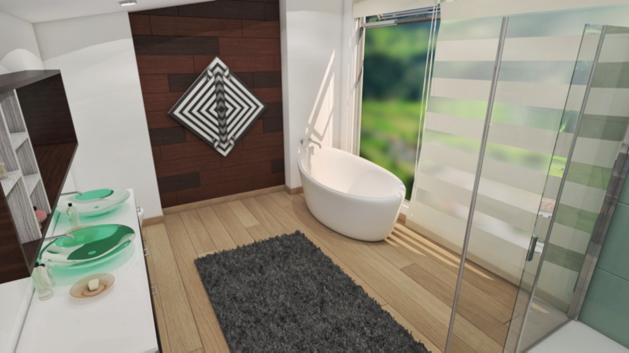 Hey. I'm Santiago. I'm an 3d artist an architectural designer. I wanted to introduce my work with this very first post. This is a proposal for a bathroom-space development which expectation was meeting certain needs, being the town view one of the most important. Hope you like it.