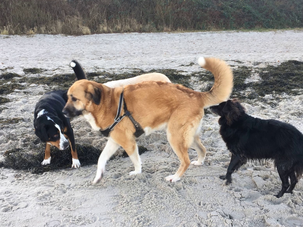Wenn es dem Hund so gut ginge, könnte er vielleicht noch über Pfingsten bleiben? Irgendwann stellte das Tierheim seine fast täglichen Anrufe ein. Irgendwann hörten wir auf zu fragen, wie weit denn das gerichtliche Verfahren wegen deiner Beschlagnahmung sei, Nuka. Dieses zog sich so sehr in die Länge, weil die "Menschen", von denen du polizeilich abgeholt wurdest, dich wiederhaben wollten. Irgendwann nahmen wir dich einfach mit in den Urlaub, ohne dich im Heim abzumelden. Irgendwann hieß es, wir könnten dich nun behalten, weil deine Vorbesitzer das hohe Bußgeld wegen Tierquälerei nicht bezahlten.