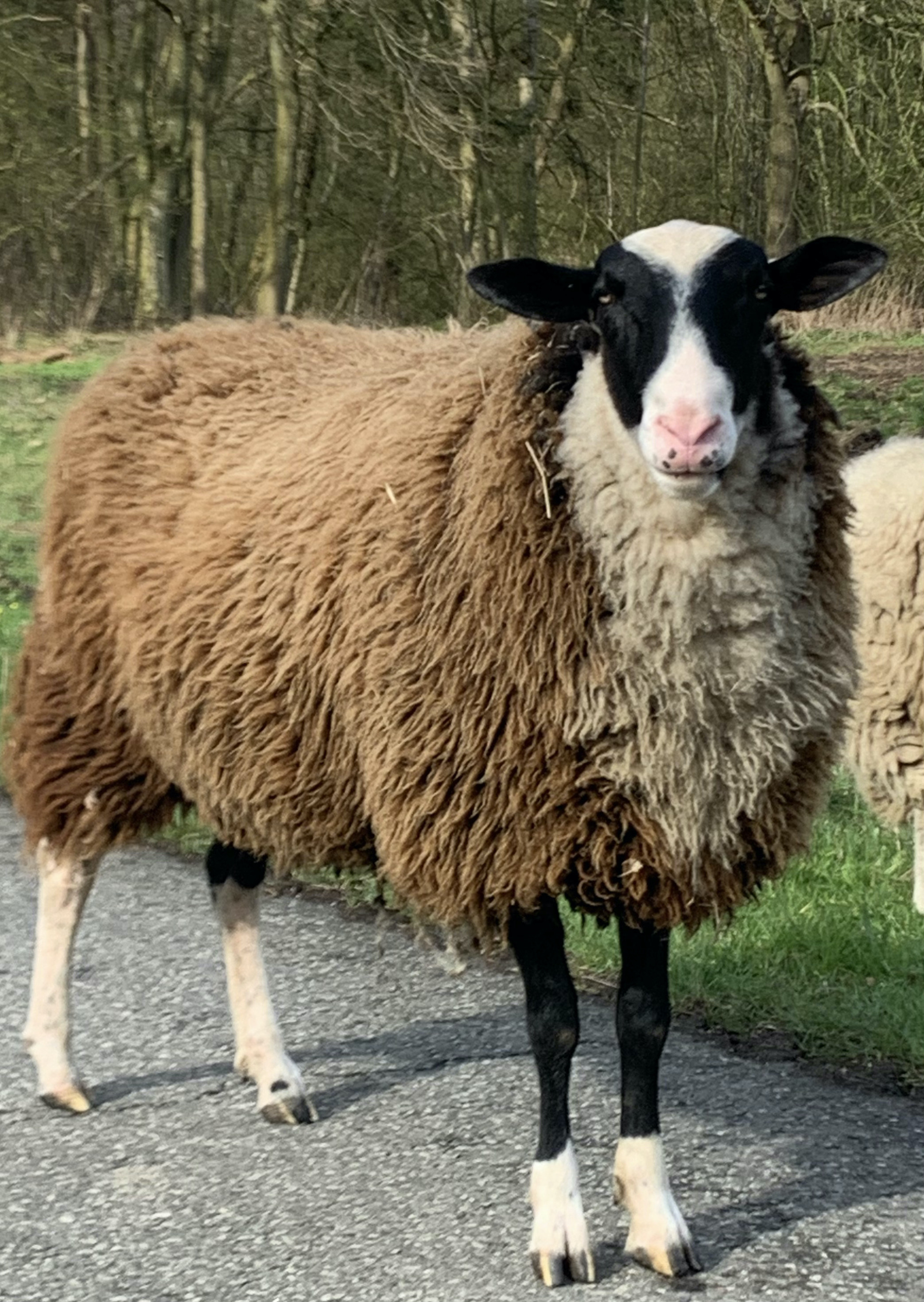 Was mich verwundert ist die Wollfarbe. Die Winterjacke ist hellbraun und im Brustbereich sogar fast weiß und rasiert ist Elton fast komplett schwarz. Bis auf die weißen Socken, die besonders vorne perfekt abgegrenzt sind.