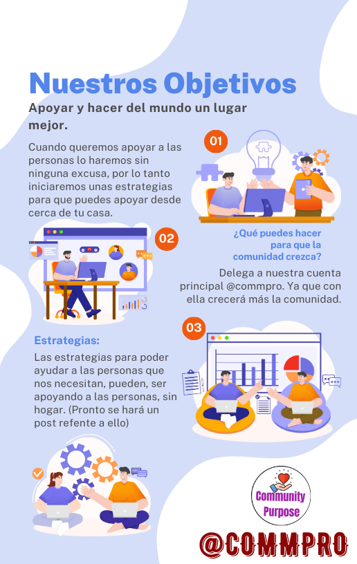 Hola, queridos lectores de la comunidad. El día de hoy 22 de enero de 2025, le damos inicio a un nuevo proyecto, es decir nace la comunidad. "Community Purpose". Comunidad en la cual todos están bienvenidos para que puedan compartir con todos sus habilidades, en la escritura. Hemos creado la comunidad con el principal objetivo de apoyar a las personas sin hogar, entre otros factores. Nuestra finalidad es crecer todos juntos como comunidad, ya que a la vez que nos apoyemos entre todos sé que llegaremos muy lejos.