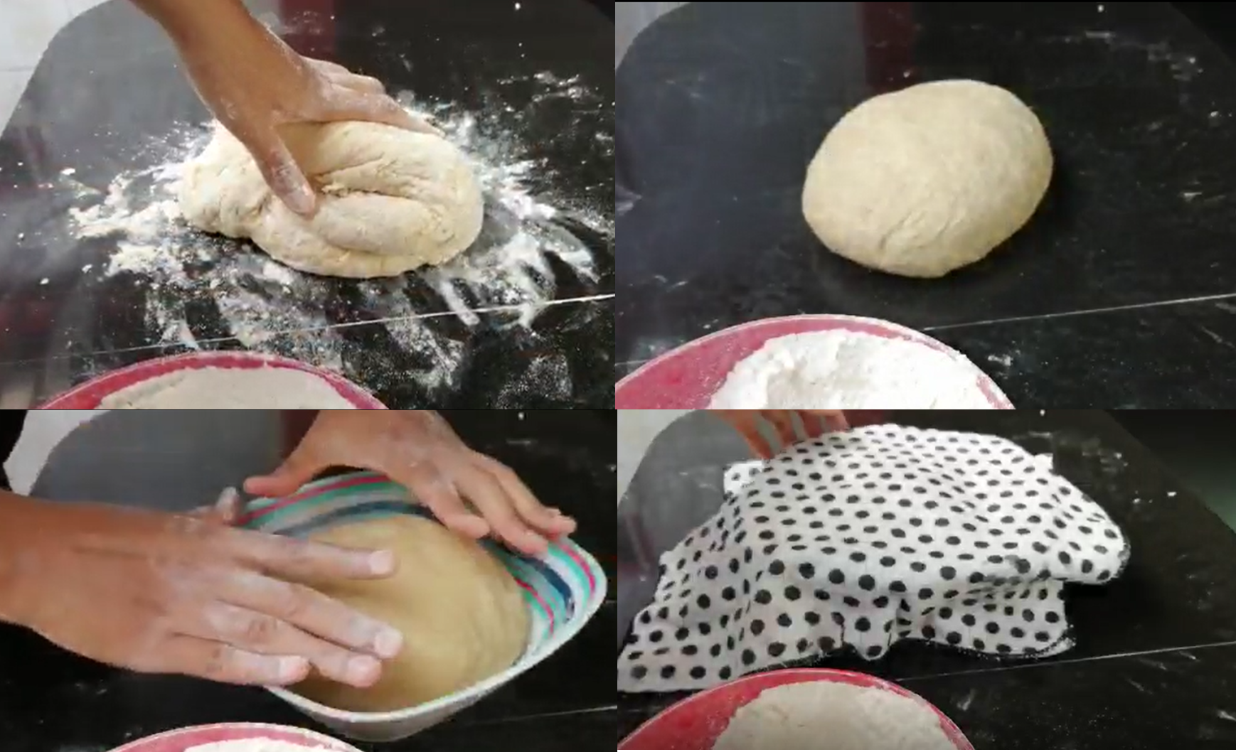 👋 STEP 10: Knead for a period of 25 minutes or a little more if the dough still sticks to the counter. Note: avoid adding a large amount of flour to the dough so that the bread does not become hard. Once the kneading time has elapsed and having a firm and manageable texture, the dough is placed in a bowl, covered and left to rest for 1 hour or until it doubles in size.