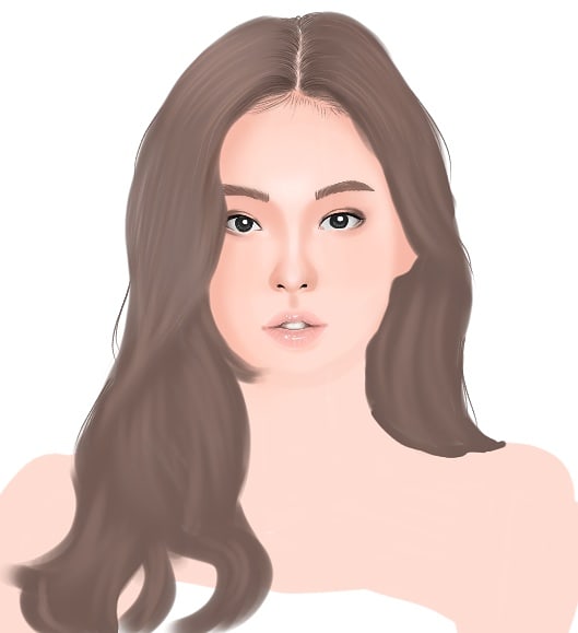 I add another layer just below the hair. With this, I start to paint the base of the skin. Then add another layer to start painting the details of the face. I use soft brushes, hard brushes and most impoetantly, airbrush for blending. Experiment on how you want your art to turn out.