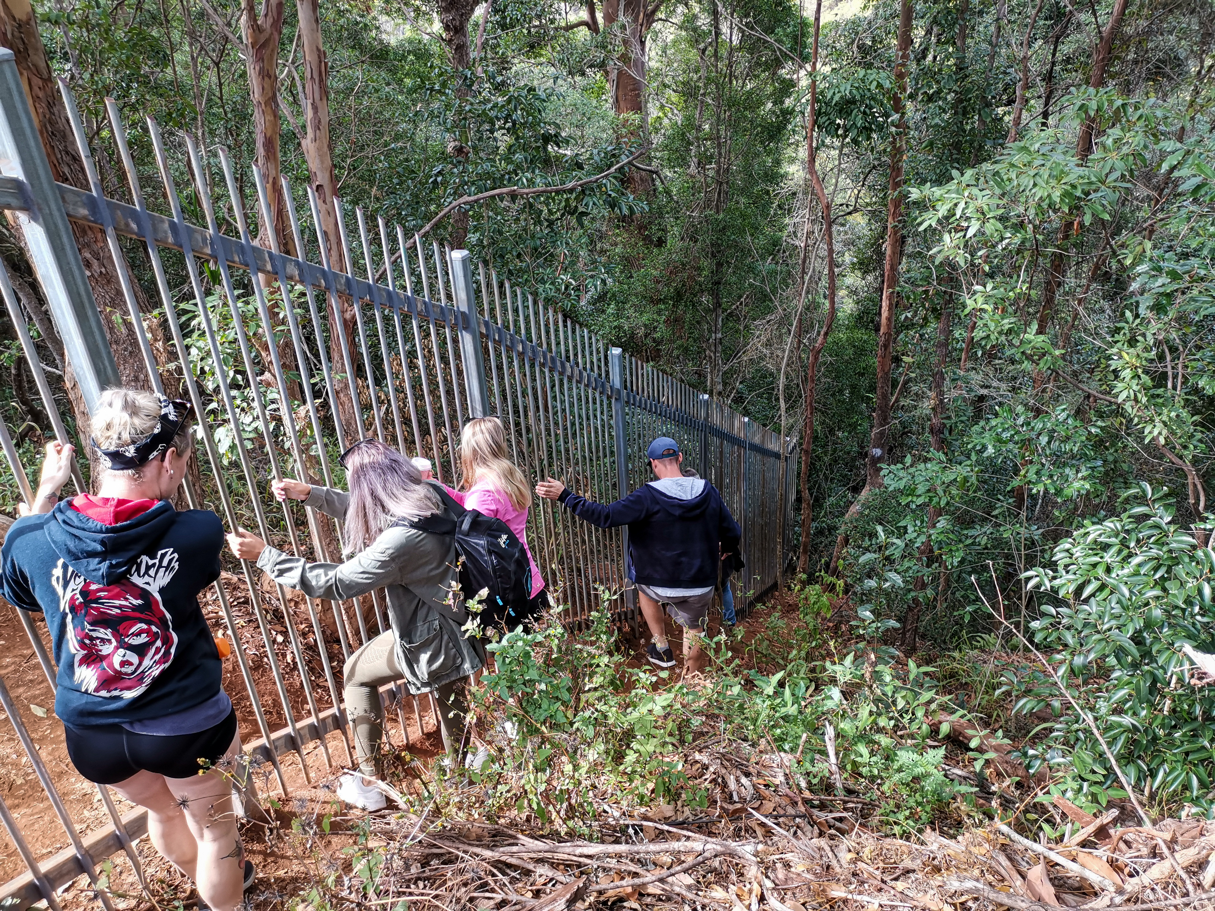 We had to get down to these Falls so we continued on the track. Only to eventually be met with this huge fence blocking the path that had security cameras.