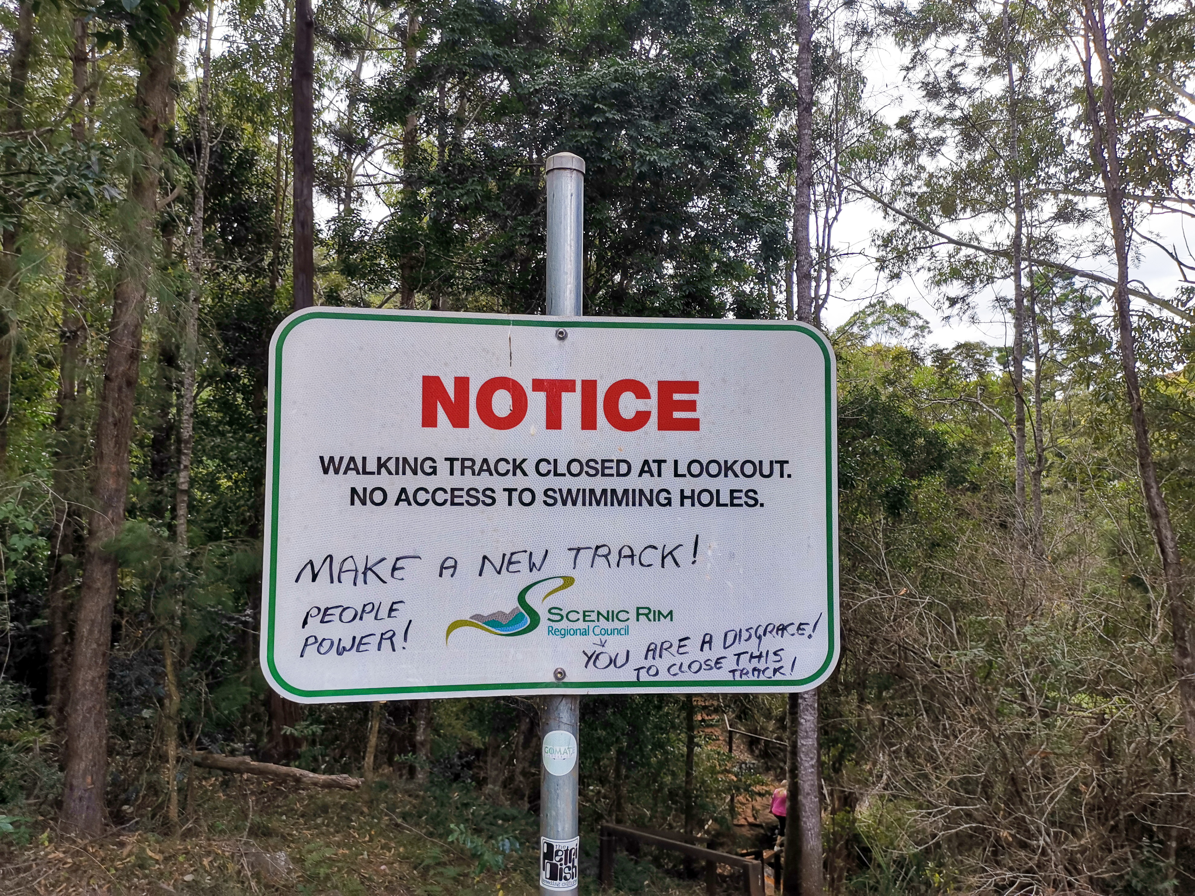 Once we enter the walkway to start our hike we noticed this sign saying the track to the swimming holes was closed. The locals didn't seem to be so happy about this decision made by the local council.