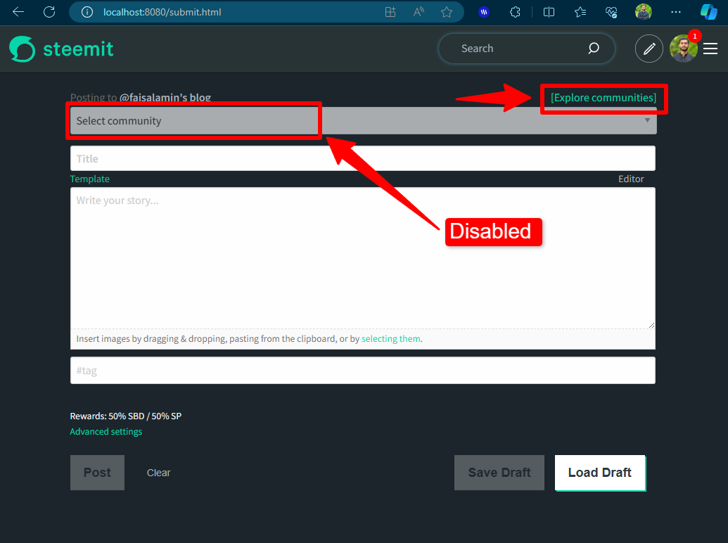 Recently I shared the development regarding the Community selection option in the Steemit condenser submit page. I was testing the code and I realized when a new user opens the submit page at that time there are communities subscribed.