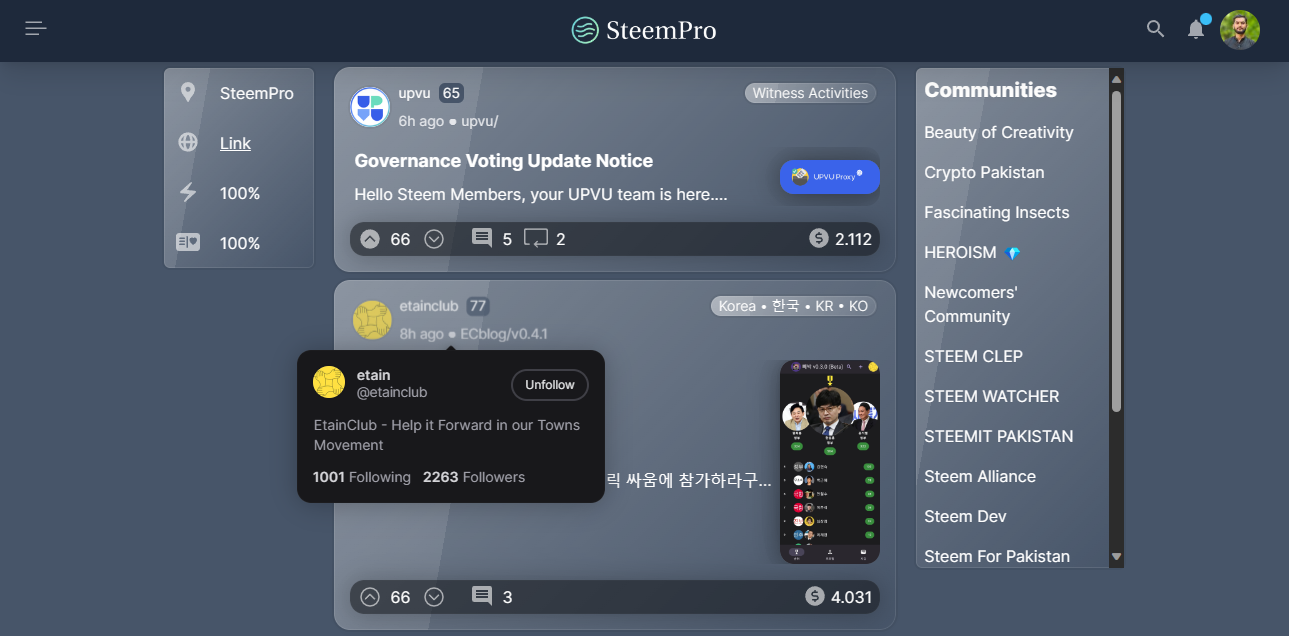 Profile and Voting Card | SteemPro Blogs Development Updates