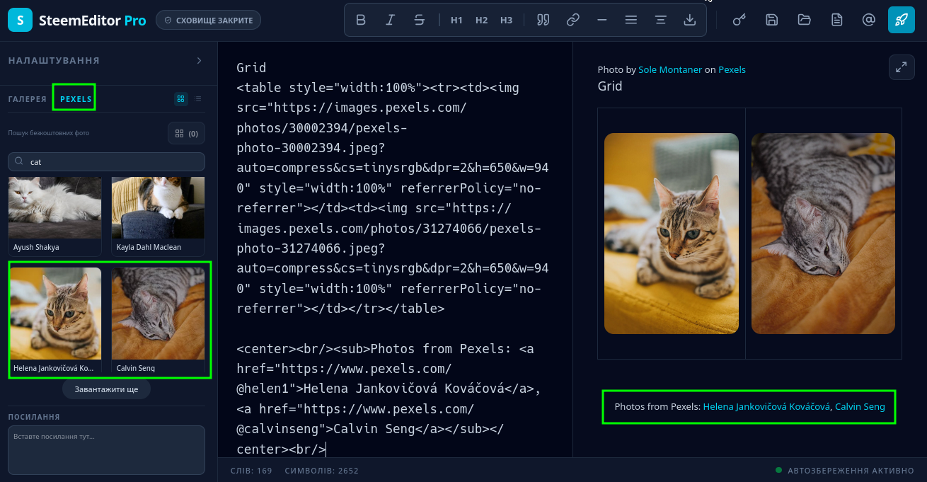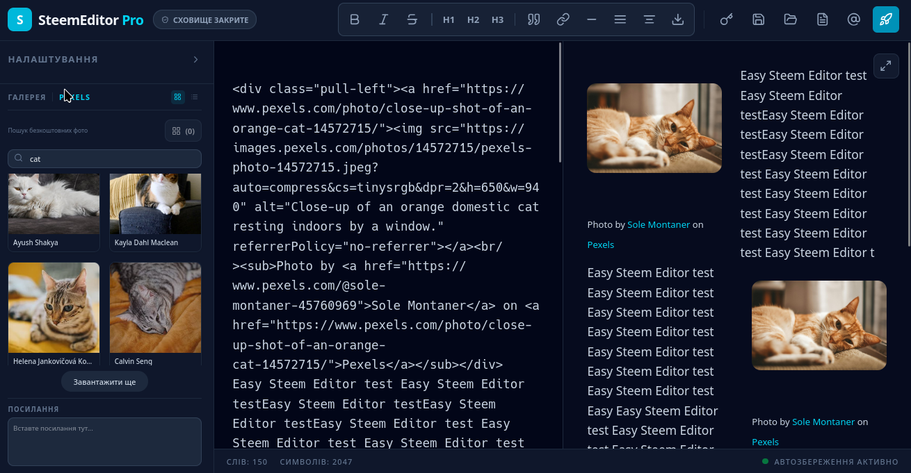 ✅ Formatting: Images can be inserted with text wrapping (left, right) or as a regular block, and attribution is correctly added in all cases. This completely removes the risks of copyright infringement before Steem curators.