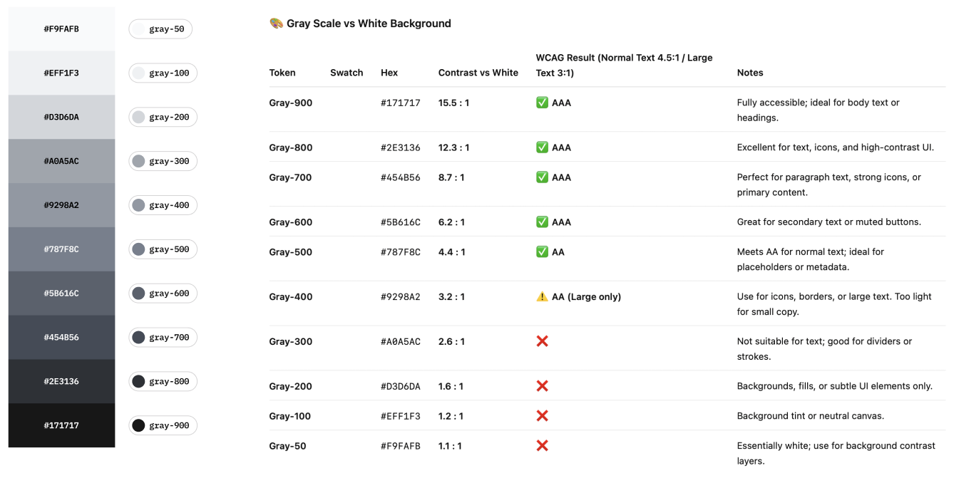 color.bg.card.hoverrather than mixing positions. - Don't: hard-code hex in components.