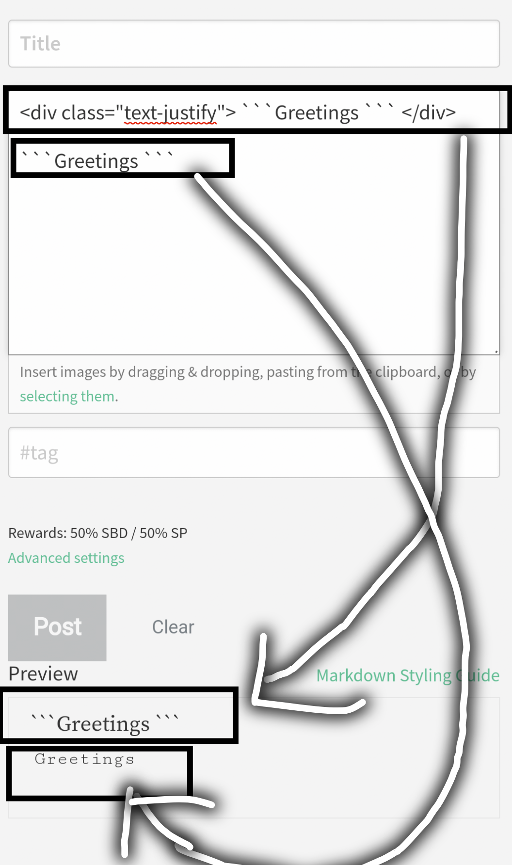 Nota: Al justificar el texto es más fáciles de leer, porque el texto queda sin espacio en las terminaciones de cada línea. Una publicación con este código se ve muy bonita.