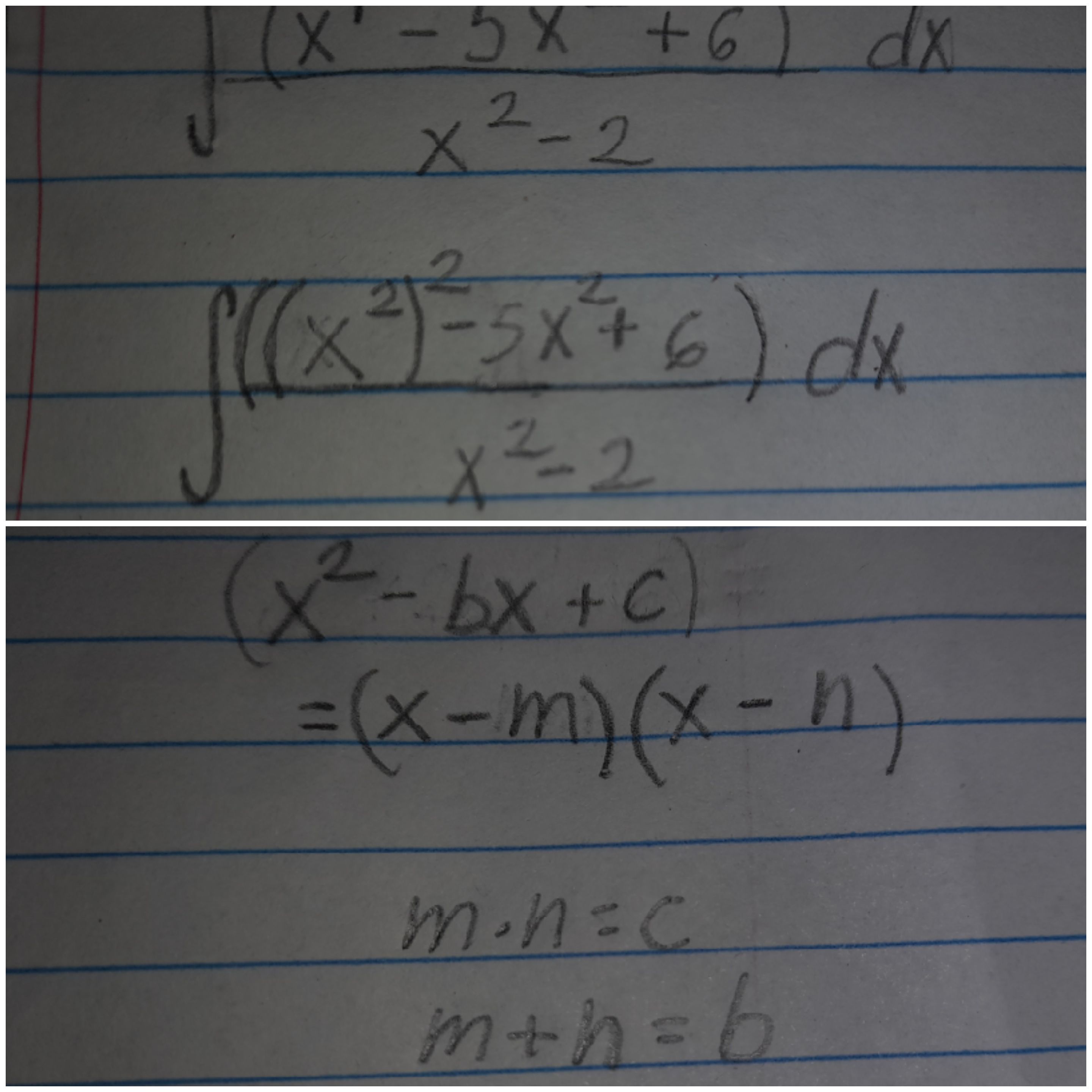 Ahora reescribiendo "x^4" por "(x^2)^2" podemos aplicar una forma de factorización por tanteo: