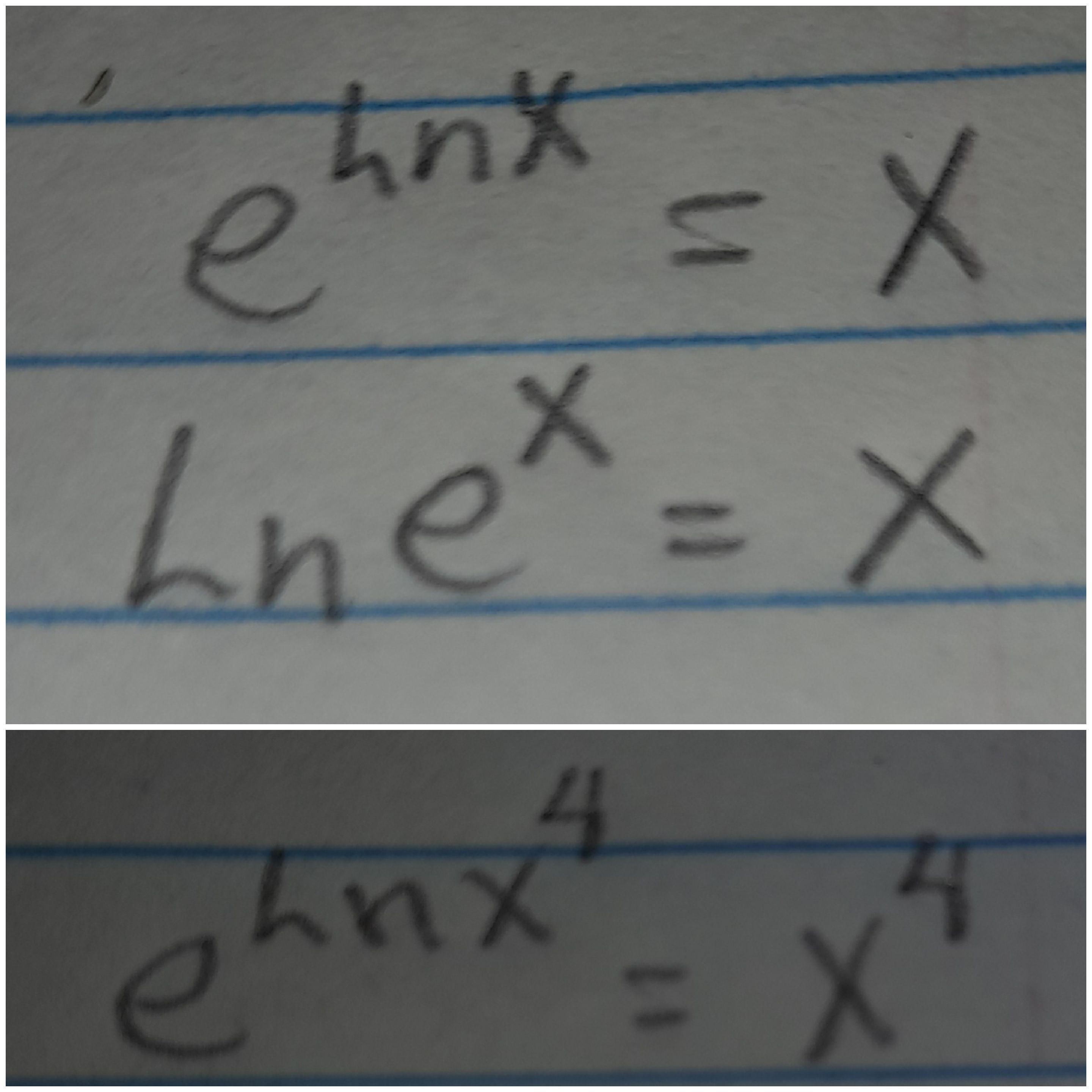 Luego por las propiedades que explique antes tendremos que "e^(lnx^4)" va a ser igual a "X^4". Luego nos queda: