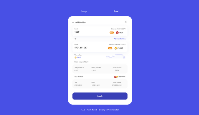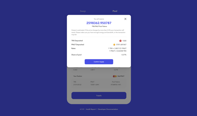 10 - En el cuadro emergente, confirme la transacción, haga clic en "confirmar suministro". Finalmente obtendrás tu PNUT-TRX LP.