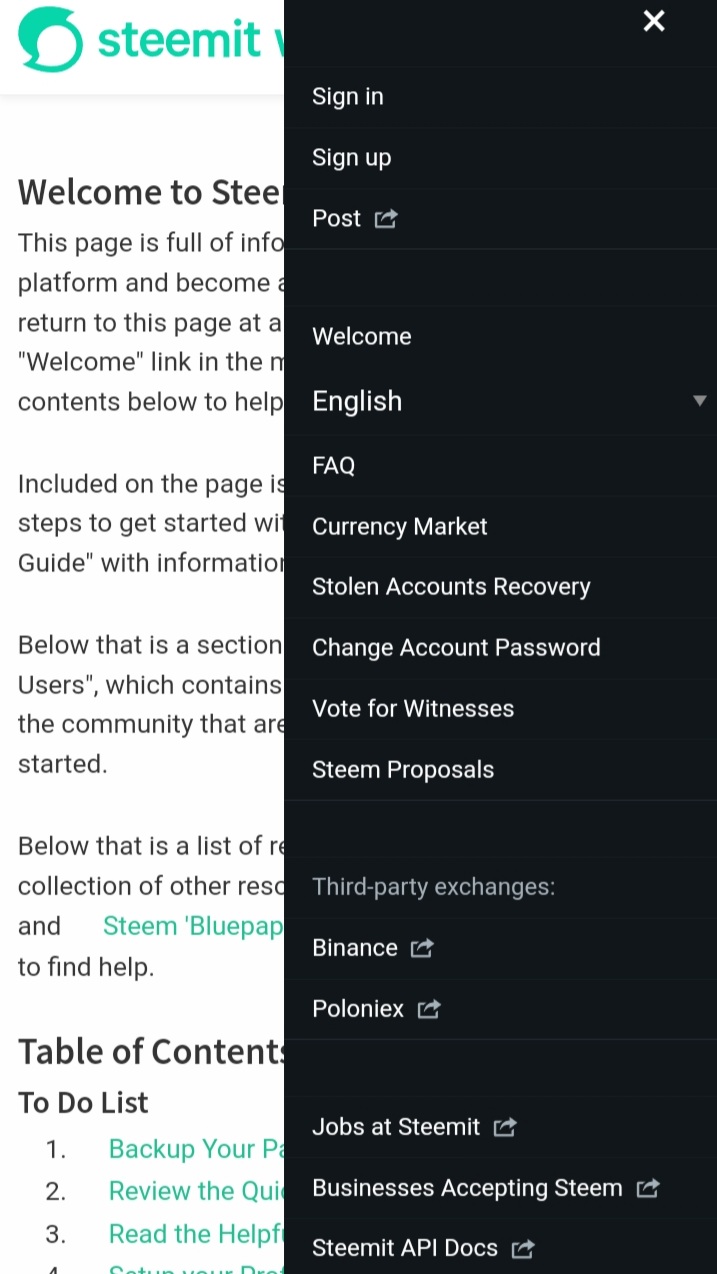 You might not notice it immediately but there's a menu in your wallet as well that provides you with not only a FAQ (frequently asked questions) but here is thebplace where you can vote for witnesses and.. proposals!