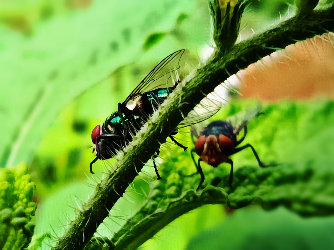 Apart from its beauty, this fly is very dangerous for human health, if we eat what has been infested by it we will experience diarrhea and dysentery, therefore I suggest to keep food and children away from these flies