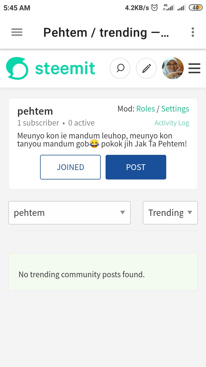 Ka bereih .. join member pu moderator drou neuh? Awai syit na akun @pehteem ... Hahahaha, nteuk aci loen check, peu mantong jeut ta peu aktif, daripada peugot baro lom