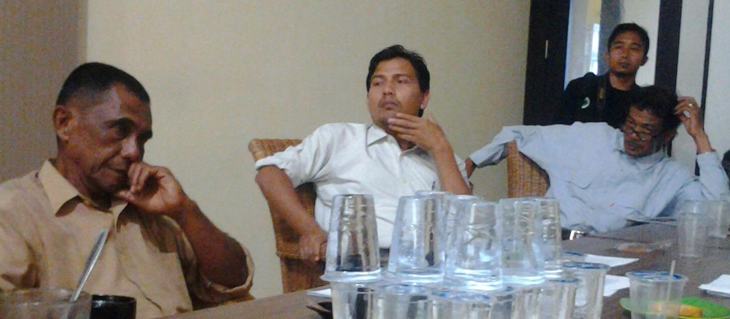 Nyak Kaoey tengoh pohcakra ngon rakan penyair Din Saja dan budayawan Nab Bahany AS bak saboh jan di Kutaraja [Foto: ata jaméun]