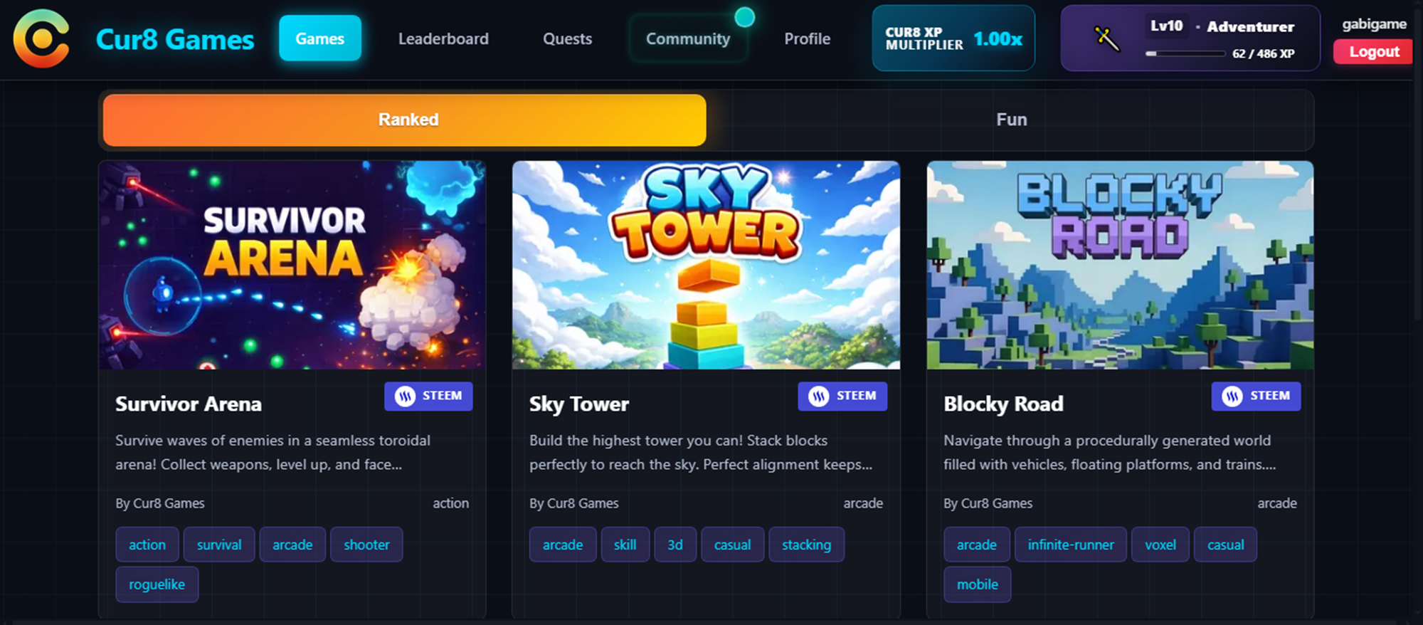Mi tiempo para jugar es limitado debido a mis estudios, pero cuando tengo tiempo, me pongo a jugar Survivor Arena y Blocky Road que es el otro juego que e gusta.