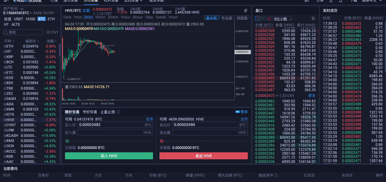 HIVE火币开盘交易惨淡,恐无操盘计划