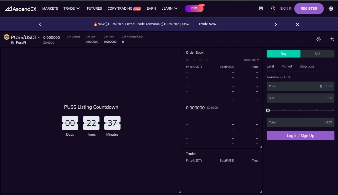 Trade on AscendEX: https://ascendex.com/en/cashtrade-spottrading/usdt/puss