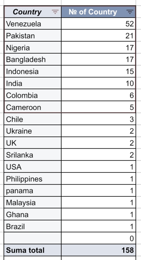 During this week, the team visited a total of 18 countries, with Venezuela at the top of the list, followed by Pakistan, Nigeria, Bangladesh and Indonesia, respectively.