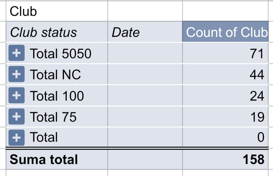 The following table indicates the club status of the different users supported with positive votes. The highest number of positive votes corresponded to authors with club5050, no club, club100 and club75 respectively.