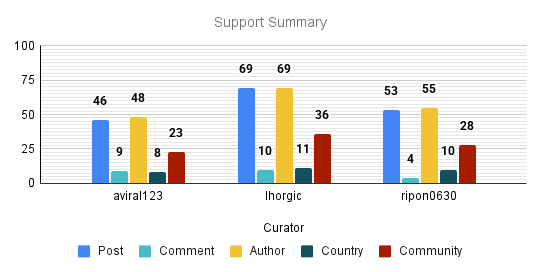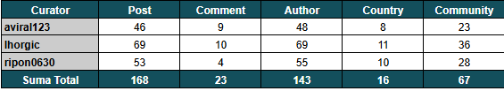 Our team consists of three curators. According to the schedule, lhorgic has completed 3 day of curation, while the other two members have each completed two days of curation tasks this week. Together, we have successfully curated a total of 168 posts and supported 23 comments. We also managed to reach out to authors from 16 different countries and engaged with users across 38 different communities.