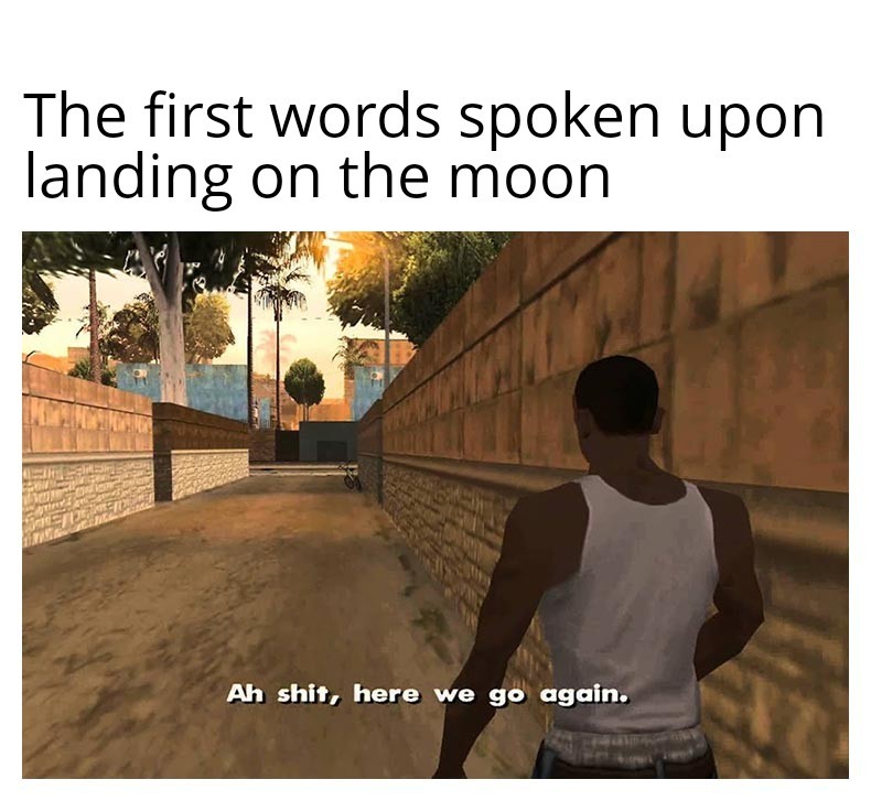 The first words spoken on the moon by the Apollo 11 mission back then by Neil Armstrong.