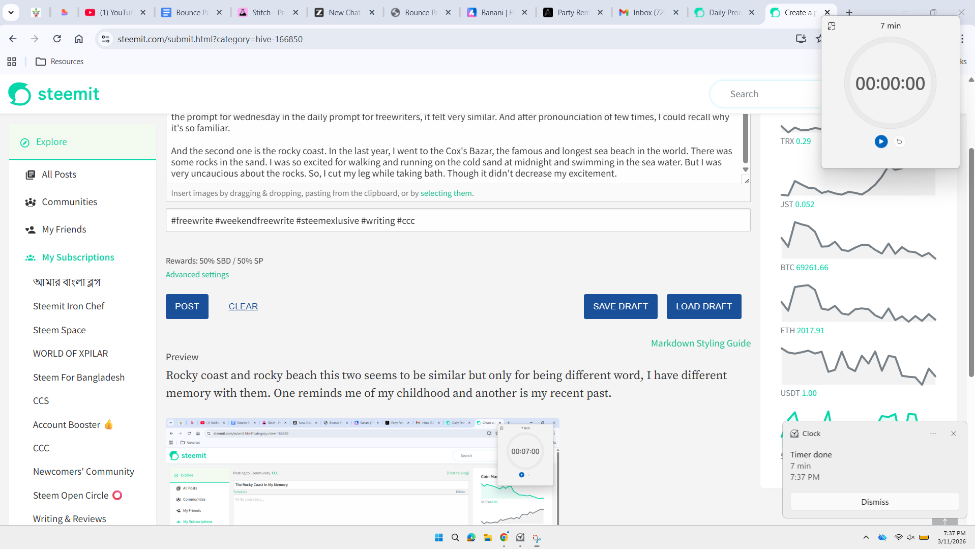 Today I took a 7 min timer. I think I was writing slowly today. But yeah, digging inside the lost memory takes time. This 7 minutes flied so fast. I wrote the title and the tags first so that I could focus on he main content fully.