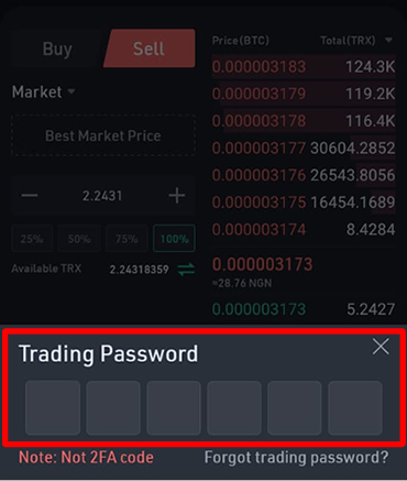 Each time you wish to complete the selling or buying of any coin, you are expected to supply your trading password. Otherwise, the transaction will not be approved. They also have email and SMS confirmation codes. Plus you can implement 2FA too. These are cool features for security, that are very important.