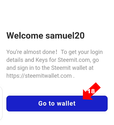 18.. Congratulations, you account has been created. Click this button to go to your wallet and retrieve your remaining passwords.