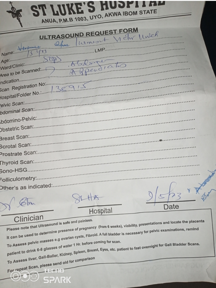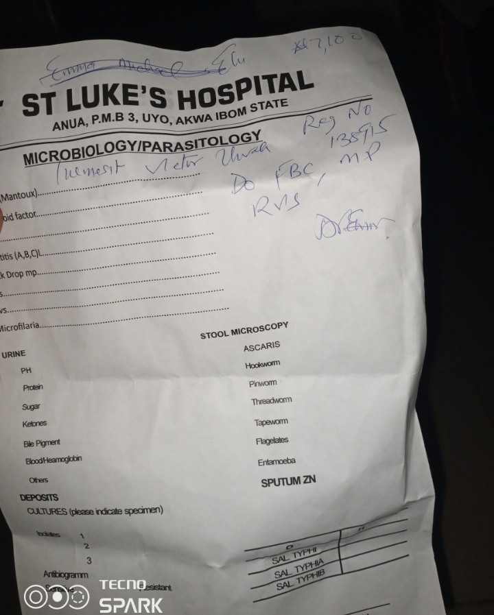 So this morning we went to St Luke's hospital anua, and we bought form, and the nurse on duty directed us to where we will see the doctor, and when it was time we were called inside the consultant room.