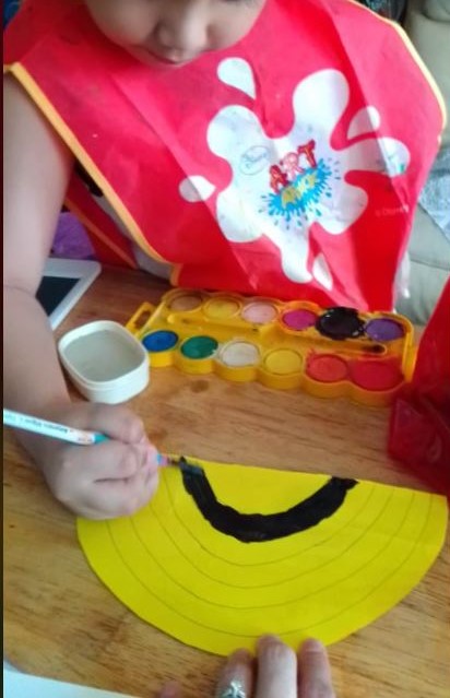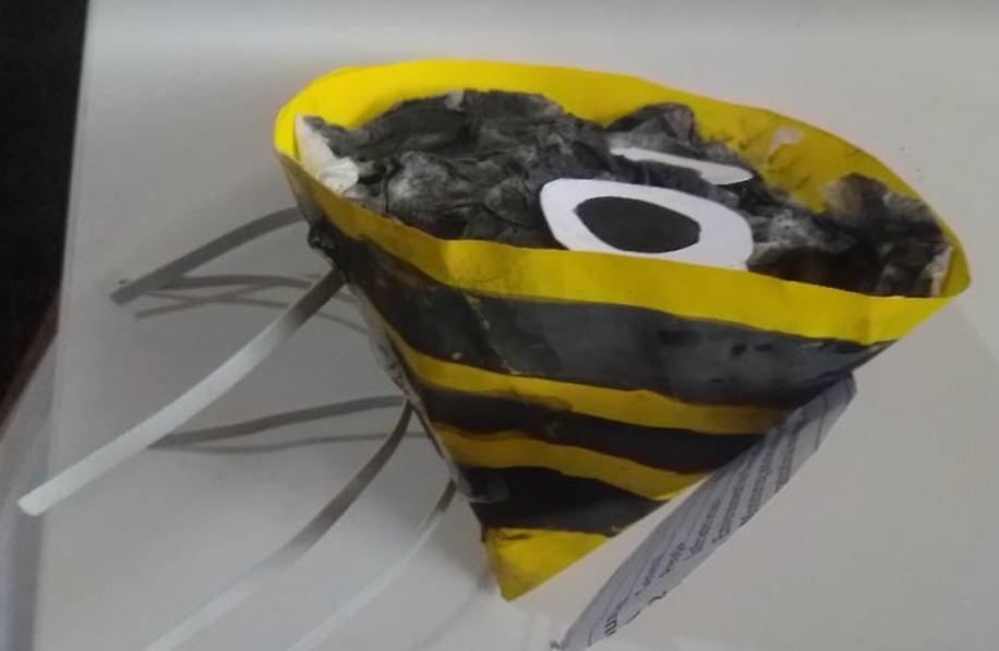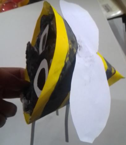 We enjoy our homeschooling activities through our art projects. Today we will show you our bumblebee art that was made using recycled cartolina and paper fasteners.